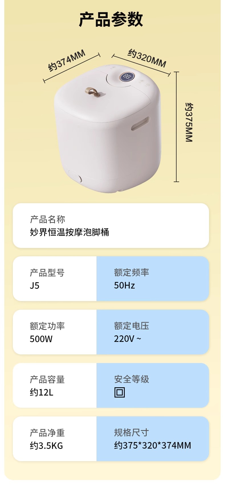 商品名称:妙界(MIAOJIE)J5泡脚桶恒温加热按摩J5 单位:台 白色旗舰款