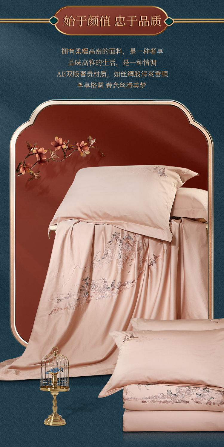 商品名称:富安娜四件套纯棉长绒棉100支双股套件抗菌刺绣被套床单/江山如画203*229cm(单位:套) 浅橙色