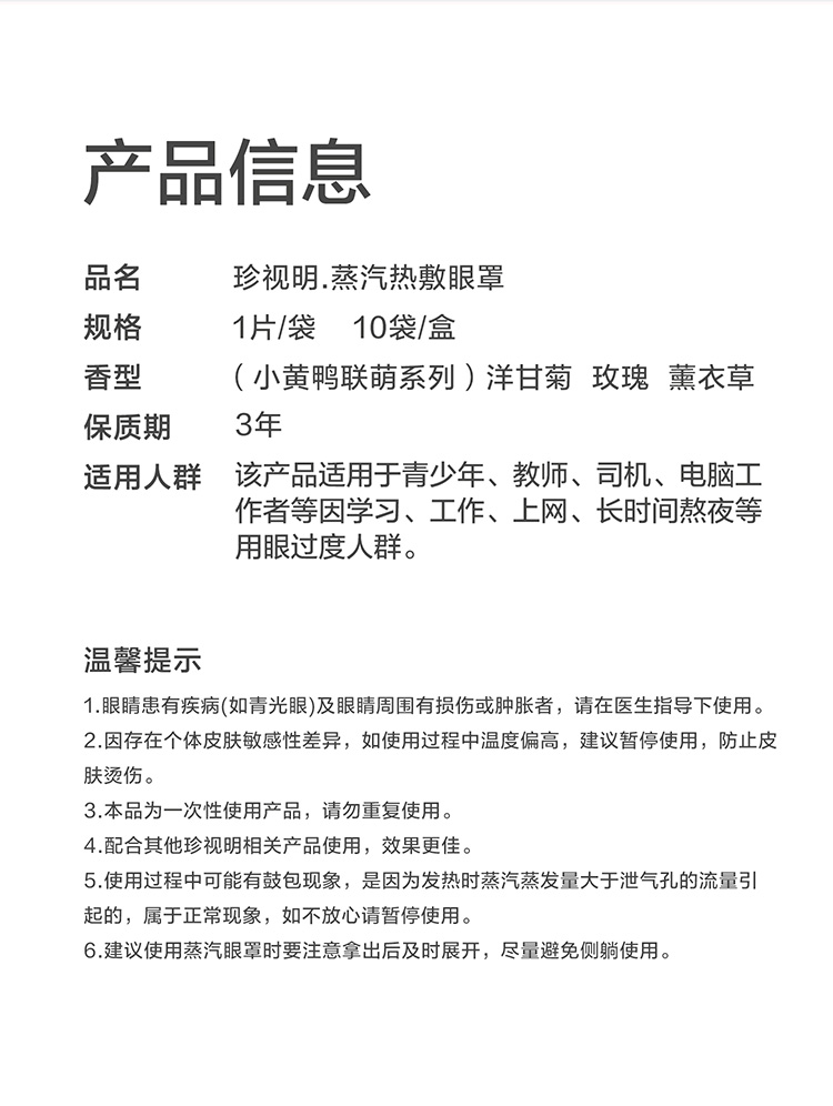 商品名称:珍视明小黄鸭小艺术家系列蒸汽眼罩洋甘菊1片/袋 10袋/盒(单位:盒) 黄色