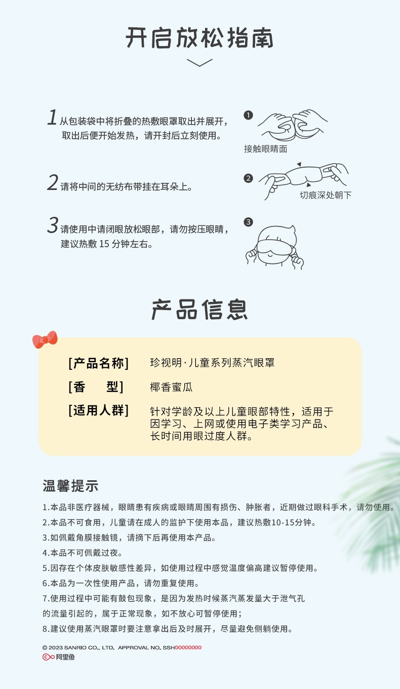 商品名称:珍视明蒸汽眼罩儿童款椰香蜜瓜1片/袋 7袋/盒(单位:盒) 蓝色