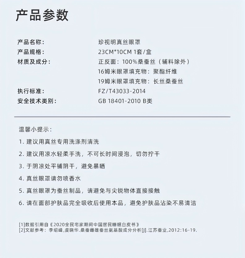 商品名称:珍视明16姆米真丝刺绣眼罩 雾霾蓝 23*10cm 1套/盒(单位:盒) 蓝色