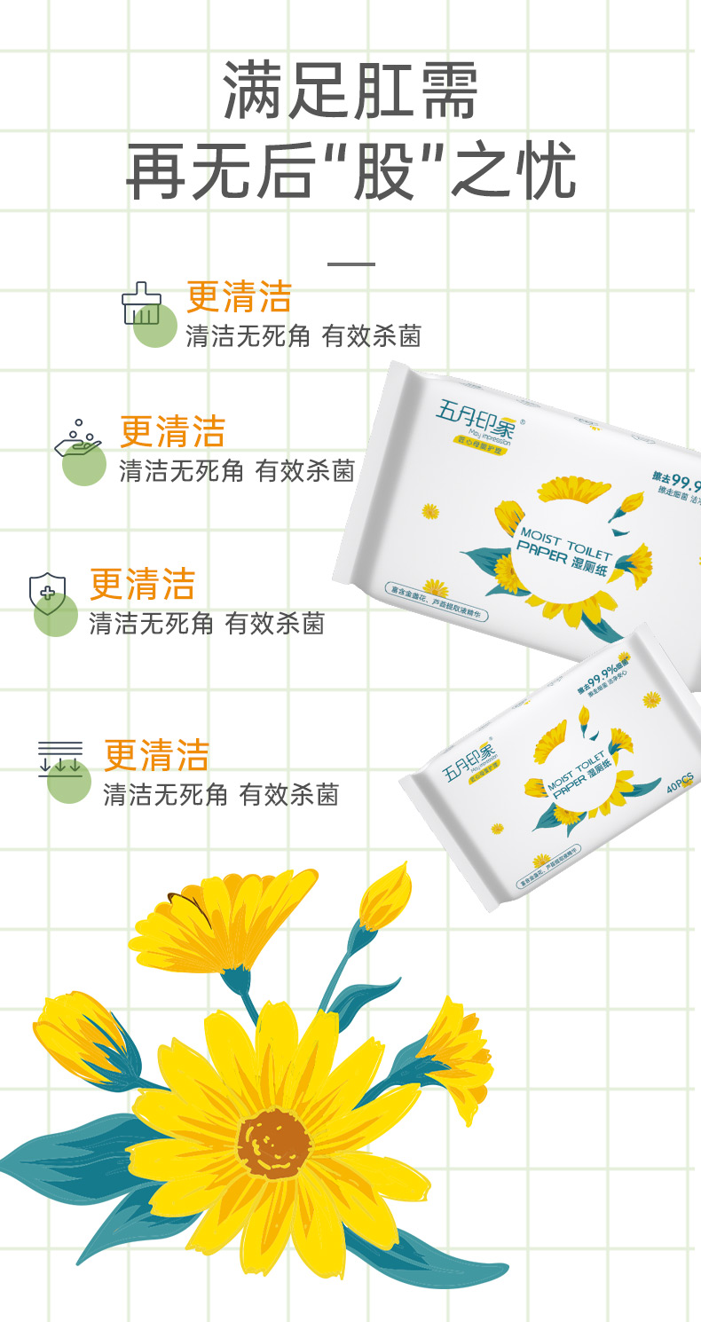 商品名称:五月印象金盏花配方湿厕纸尺寸13.3*20cm,每包80片*3包(单位:包) 花香型