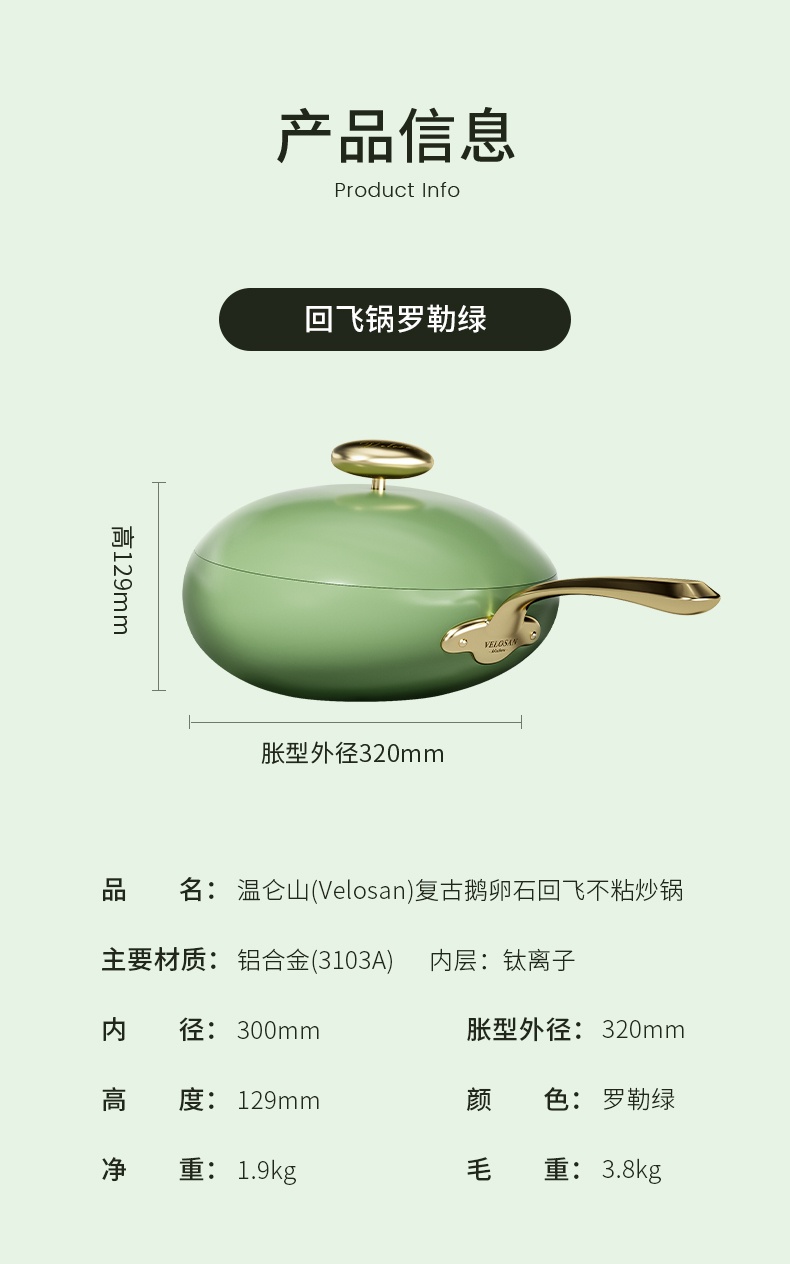 商品名称:温仑山(VELOSAN)复古鹅卵石回飞不粘炒锅32cm VE03805(单位:台) 邦迪蓝