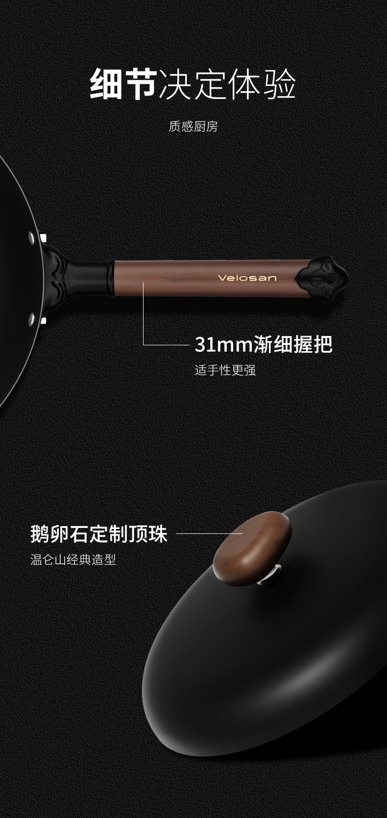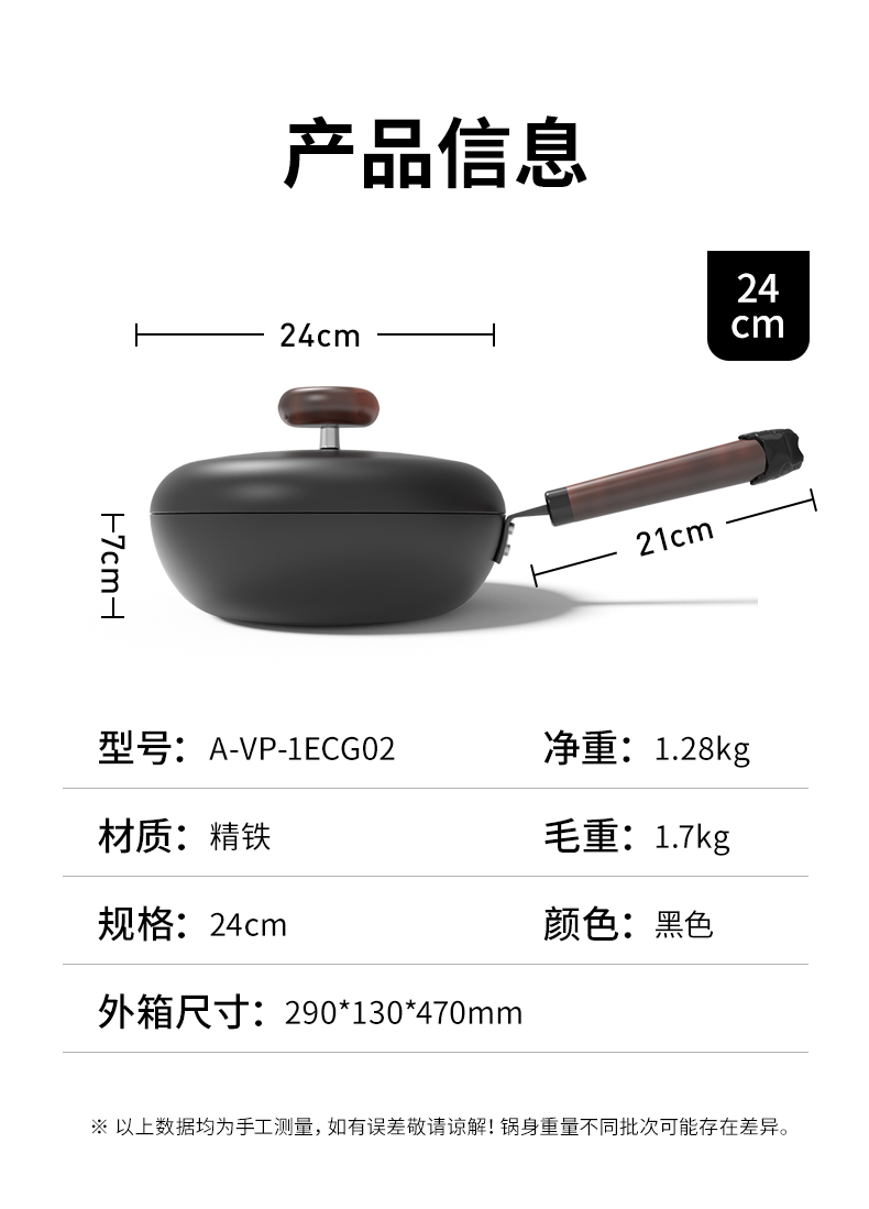 商品名称:温仑山(VELOSAN)鹅卵石系列精铁小炒锅24cm A-VP-1ECG02 (单位:台) 黑色