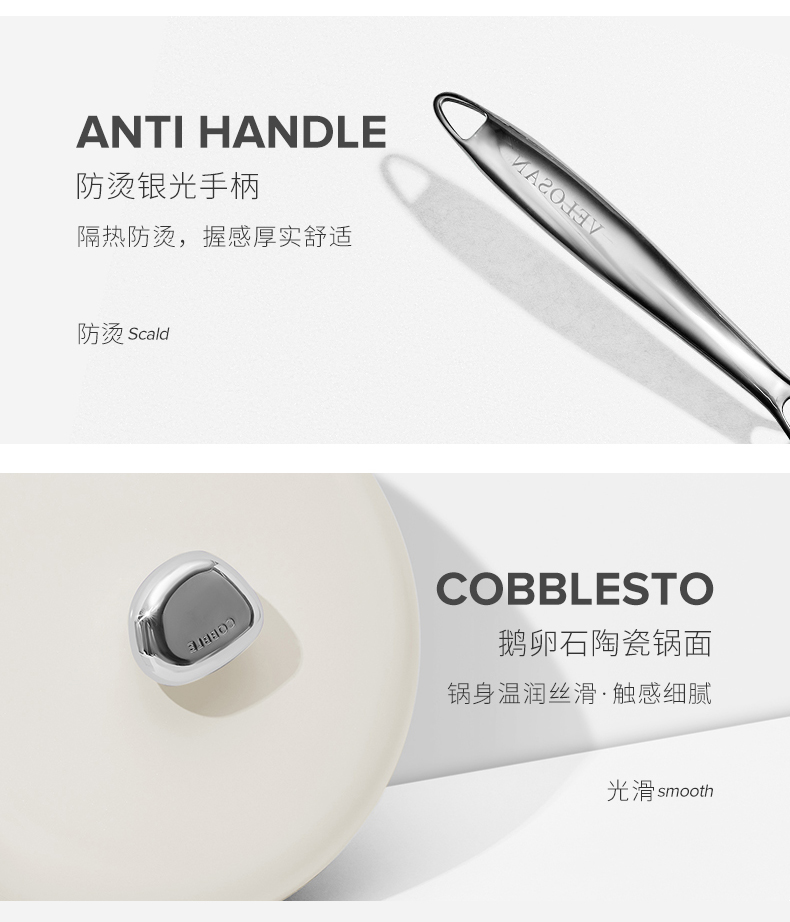 商品名称:温仑山(VELOSAN) 鹅卵石不粘锅具组合套装4件套 VE035(单位:套) 白玉兰
