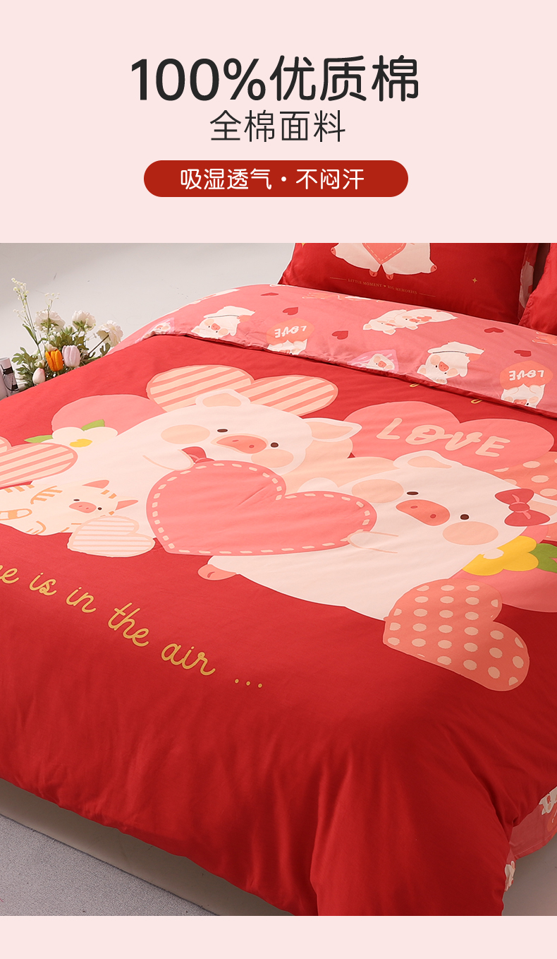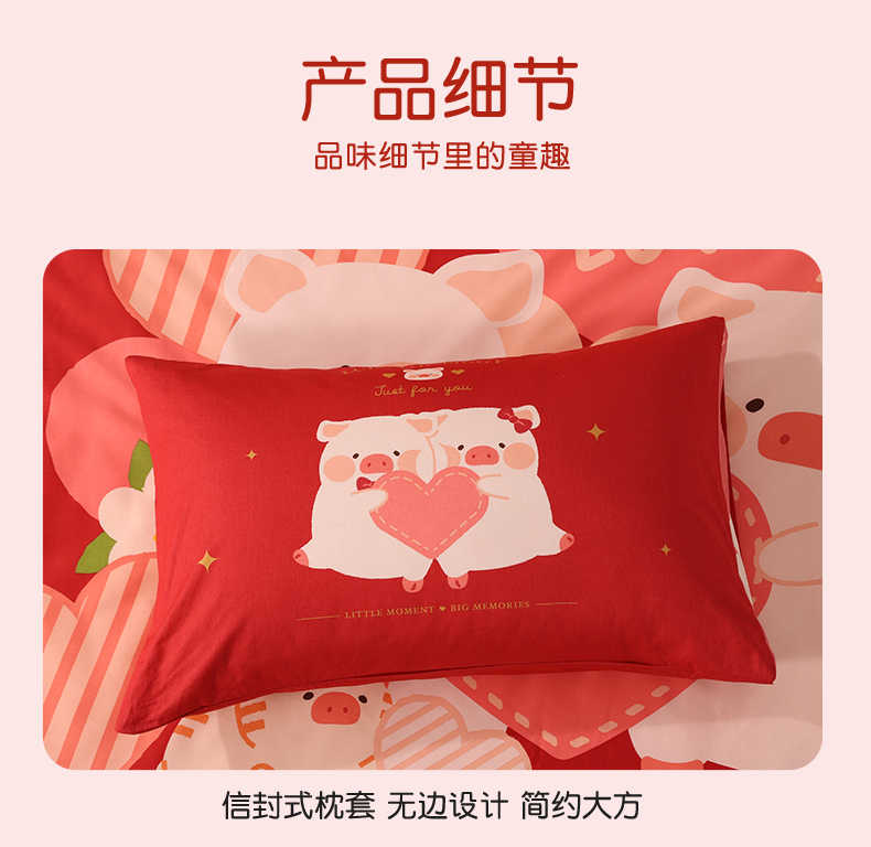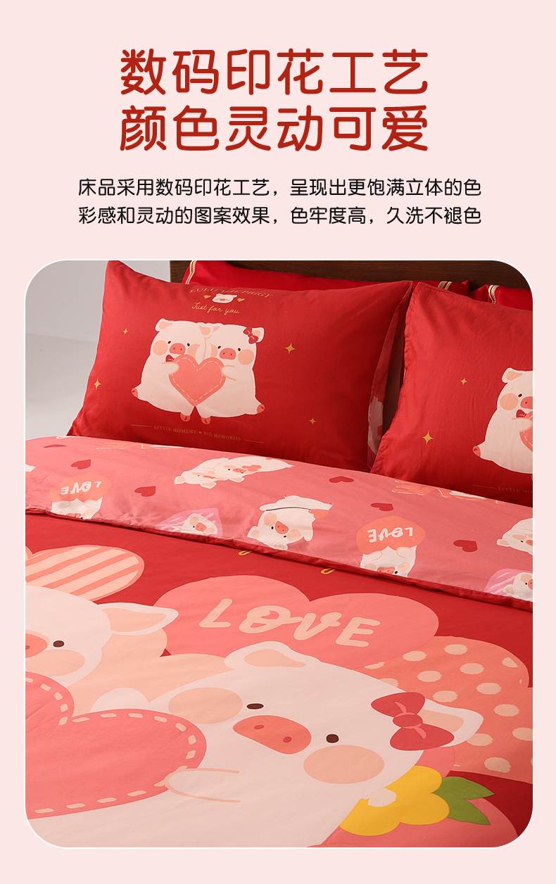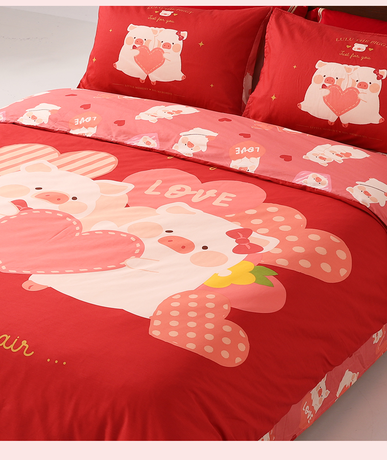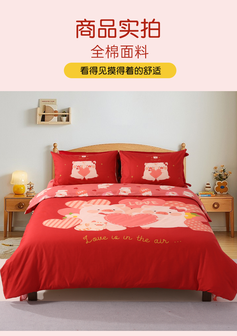 商品名称:卡撒天娇(CASABLANCA)【LuLu猪IP联名】1.8m床笠款纯棉四件套(单位/套) 红色 180×200/203×228cm