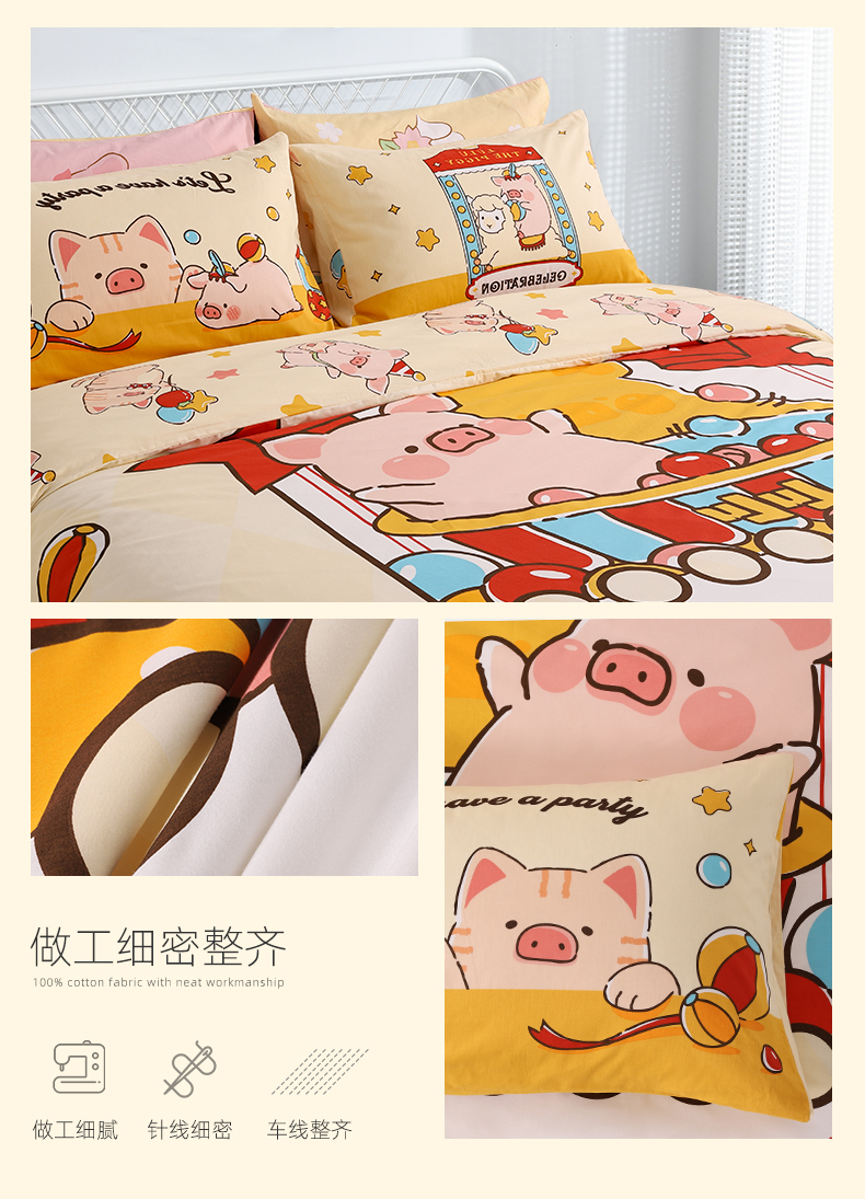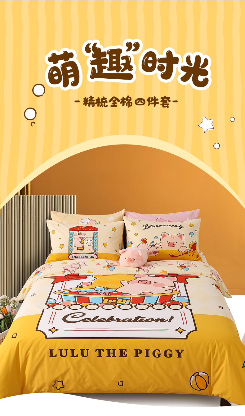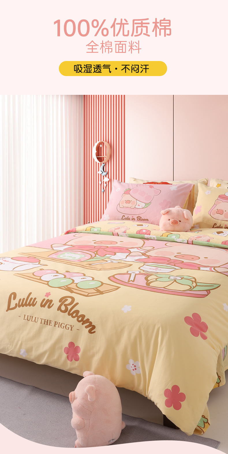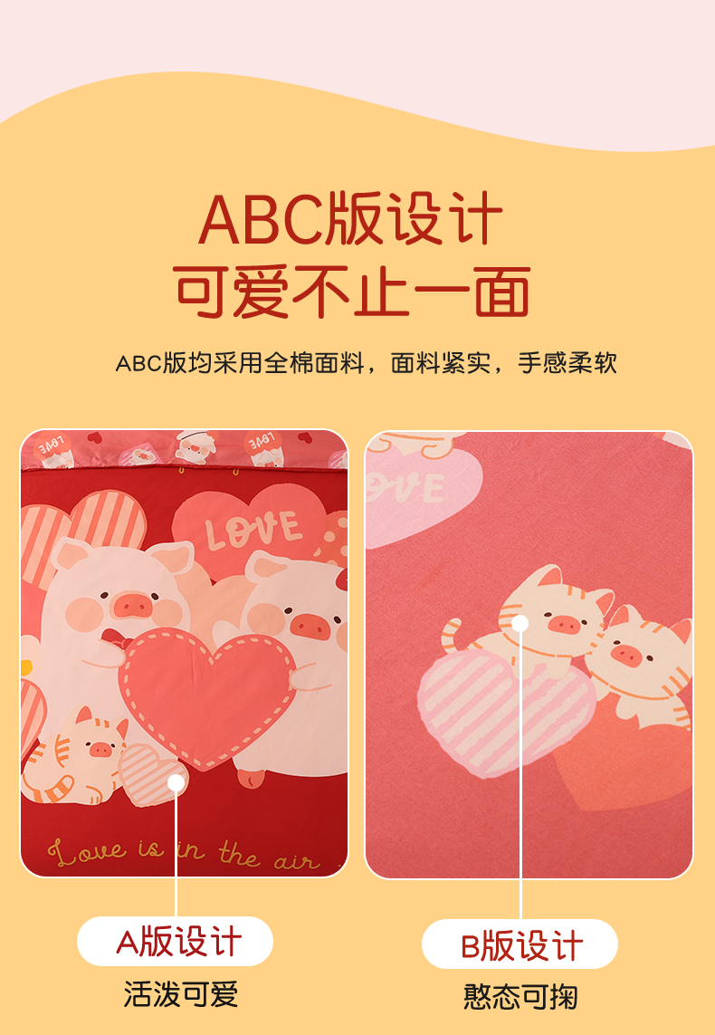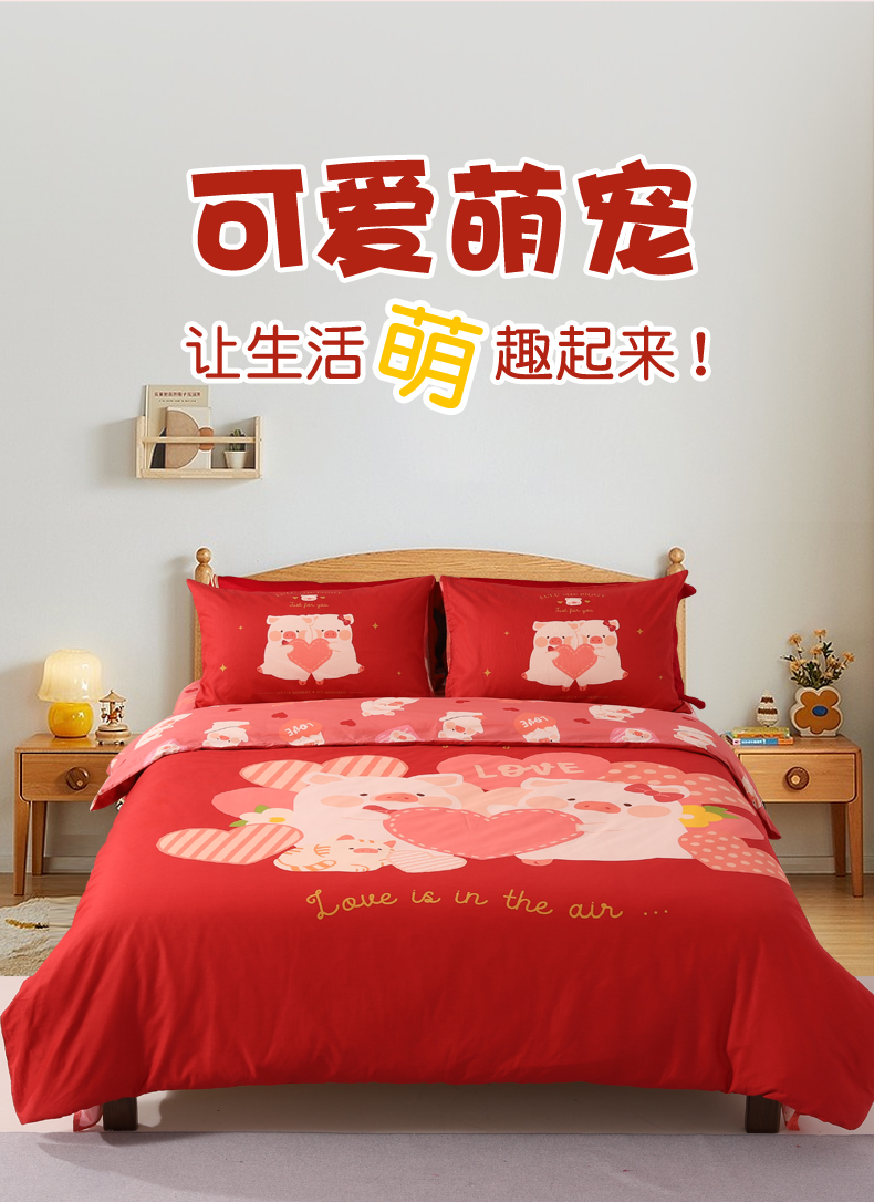 商品名称:卡撒天娇(CASABLANCA)【LuLu猪IP联名】1.8m床笠款纯棉四件套(单位/套) 红色 180×200/203×228cm