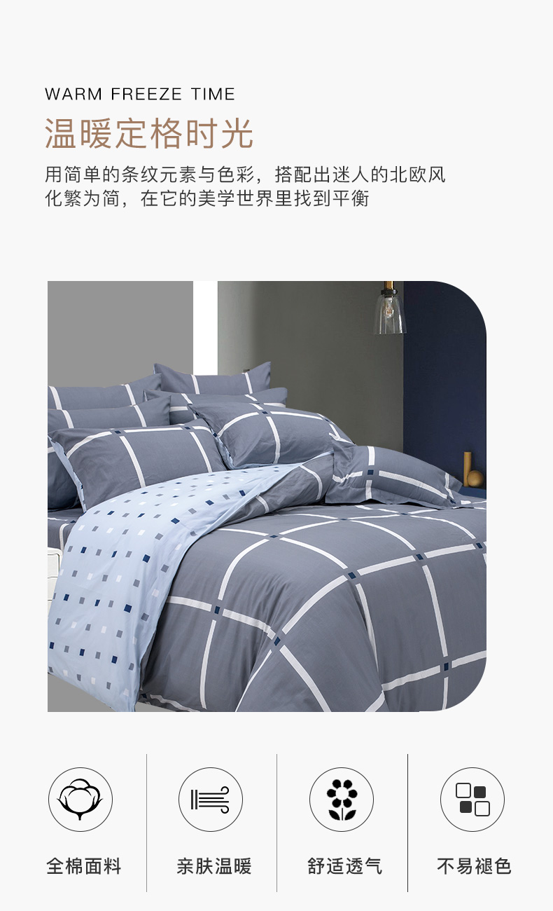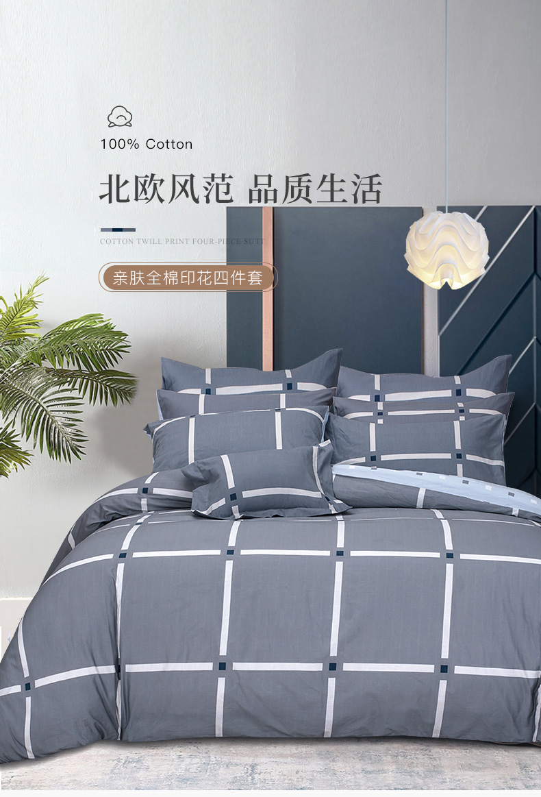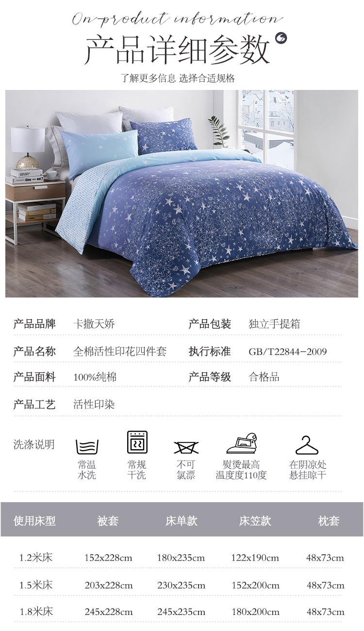 商品名称:卡撒天娇(CASABLANCA) 1.2m床笠款纯棉四件套(单位/套) 钢色 床笠122×200被套152×228cm