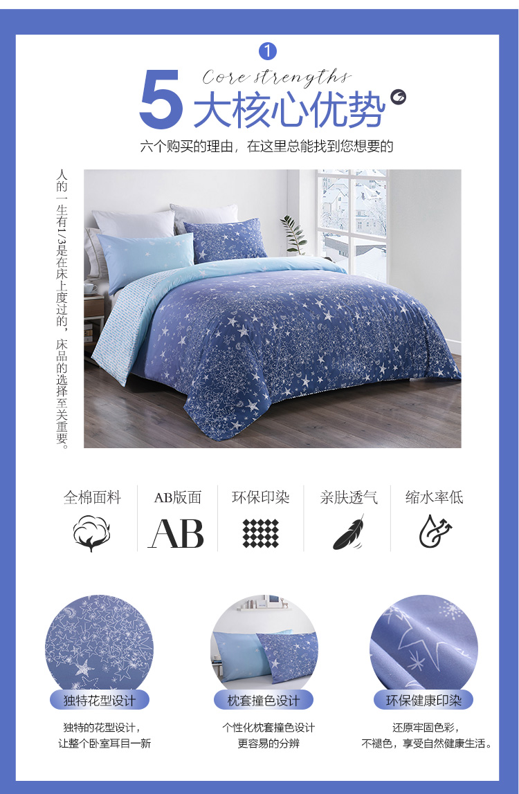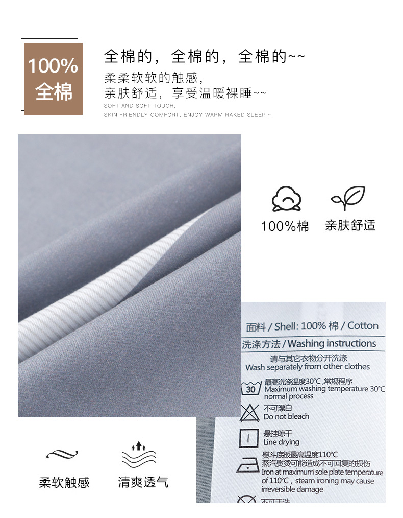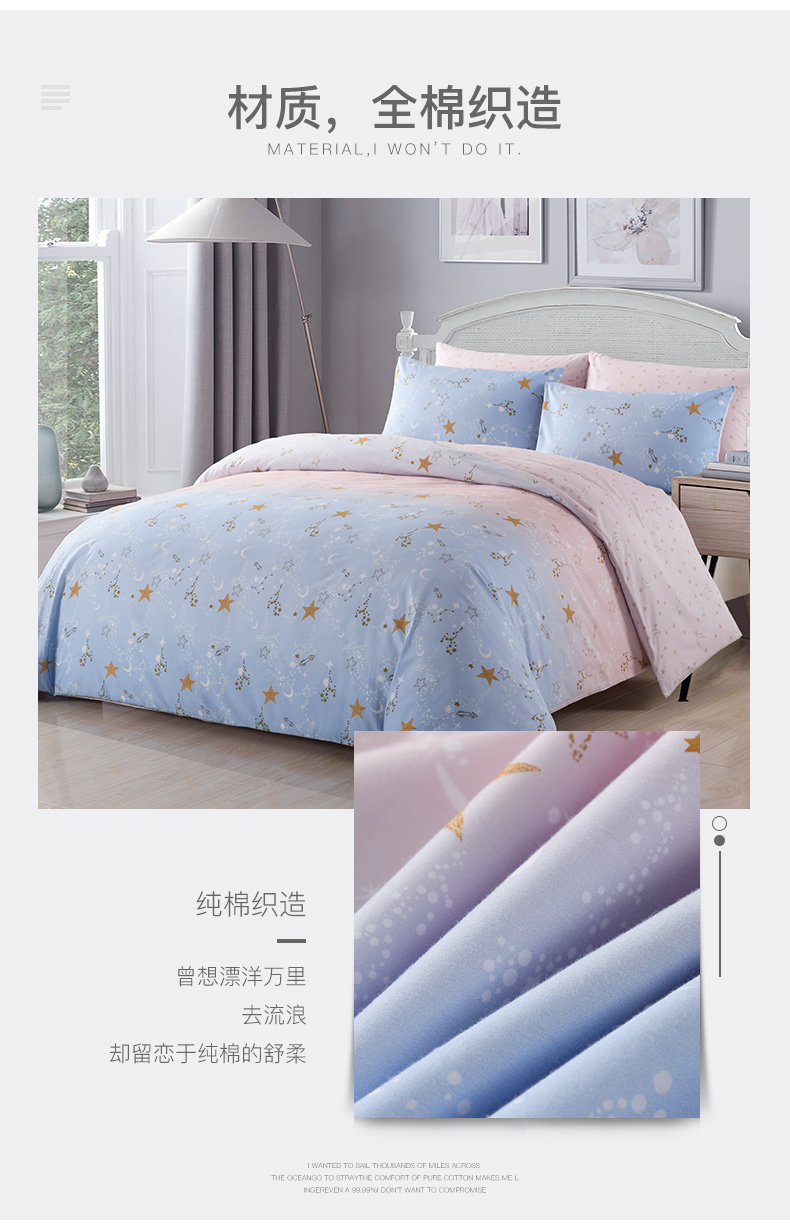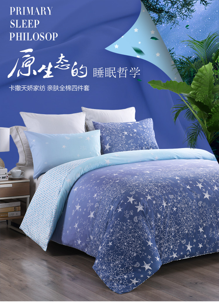 商品名称:卡撒天娇(CASABLANCA) 1.2m床笠款纯棉四件套(单位/套) 钢色 床笠122×200被套152×228cm