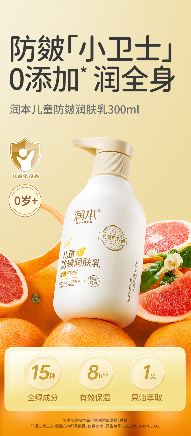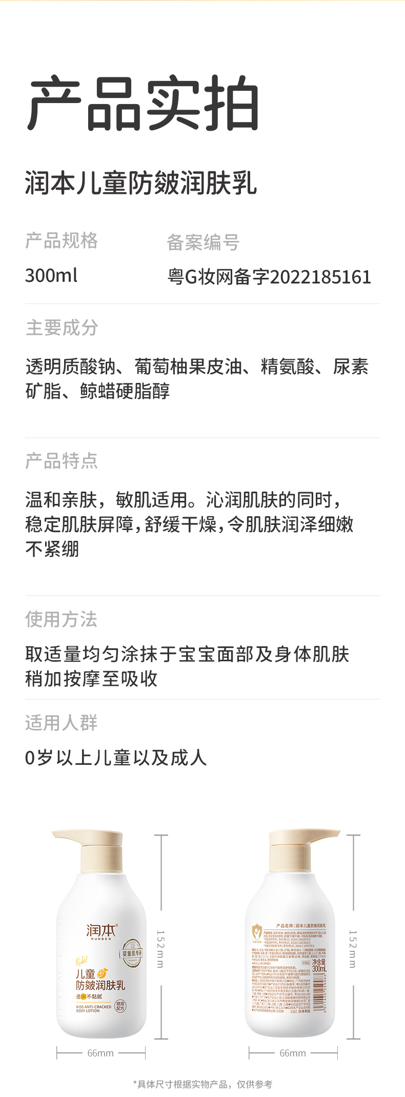 商品名称:润本儿童防皴润肤乳300ml 单位:瓶 白色
