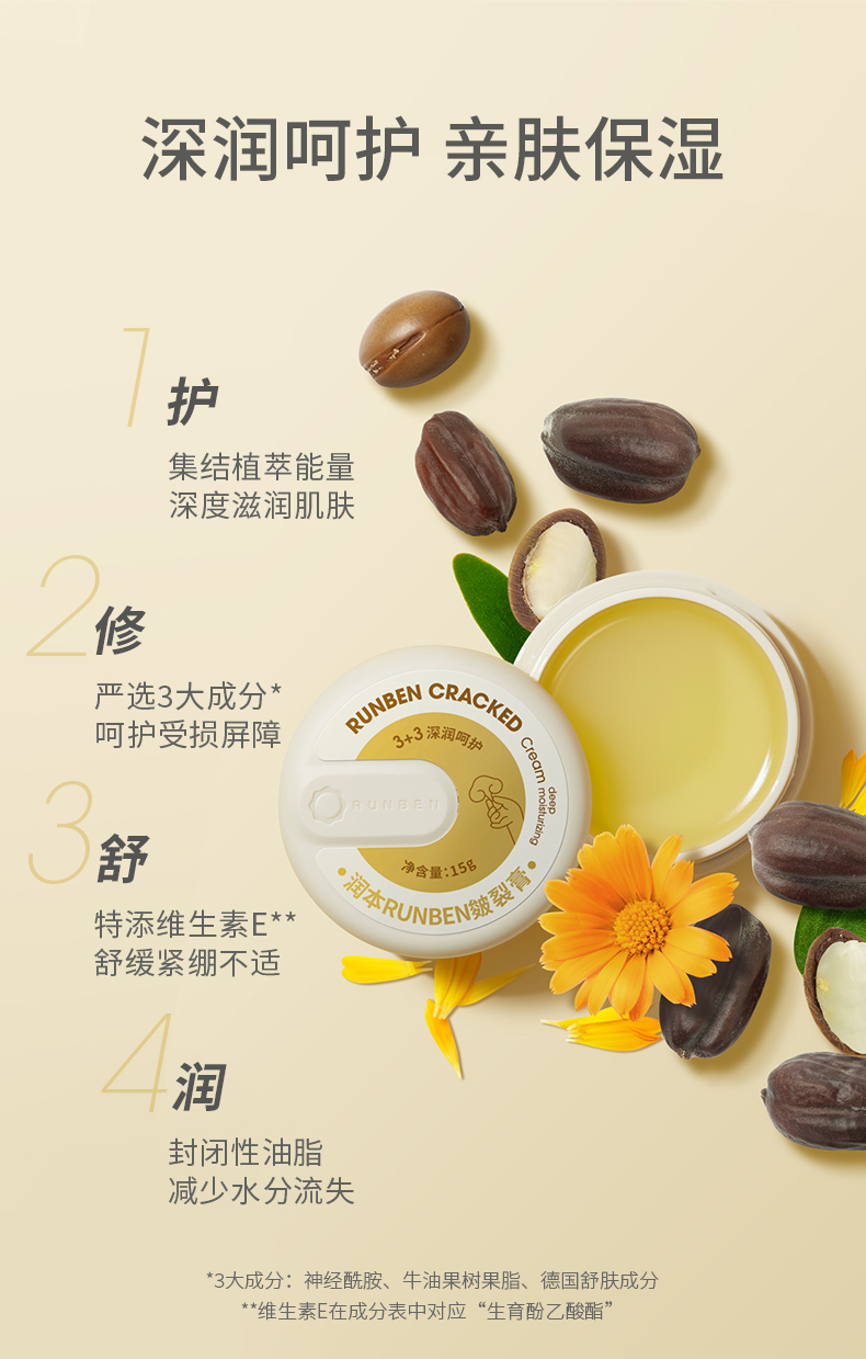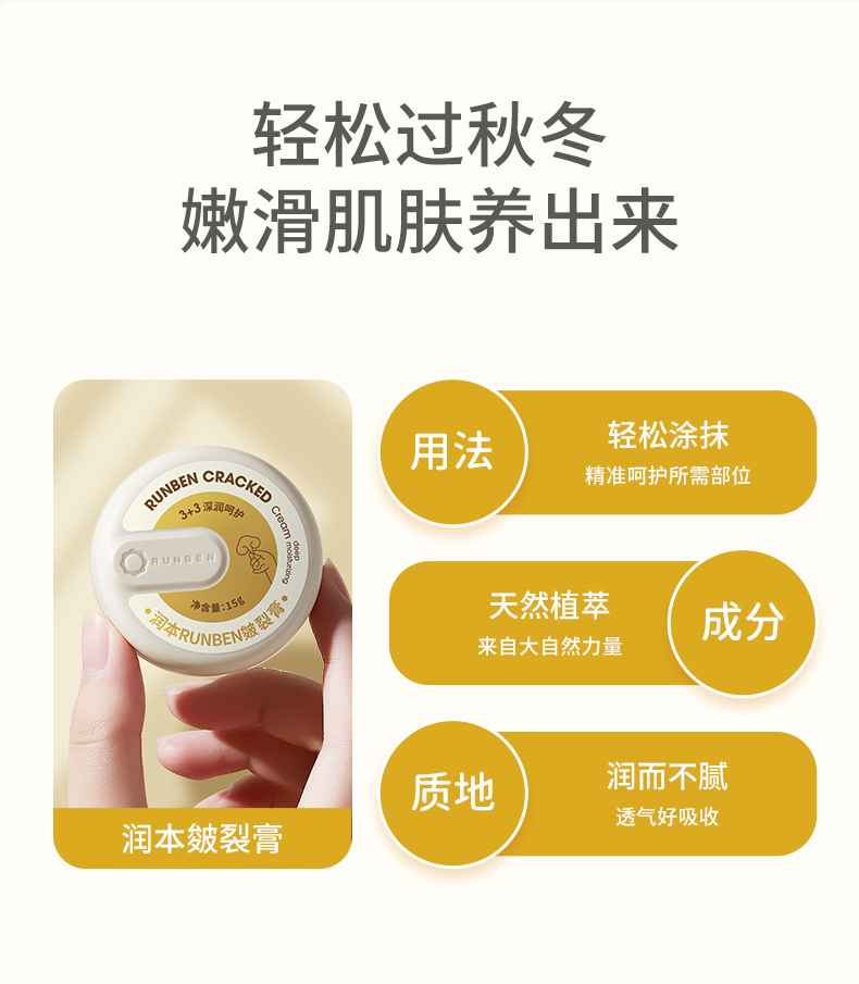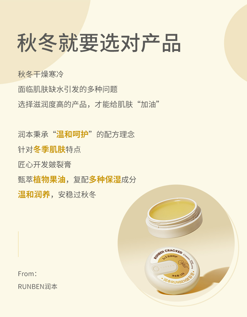 商品名称:润本宝宝儿童皴裂膏15g 单位:盒 浅黄色