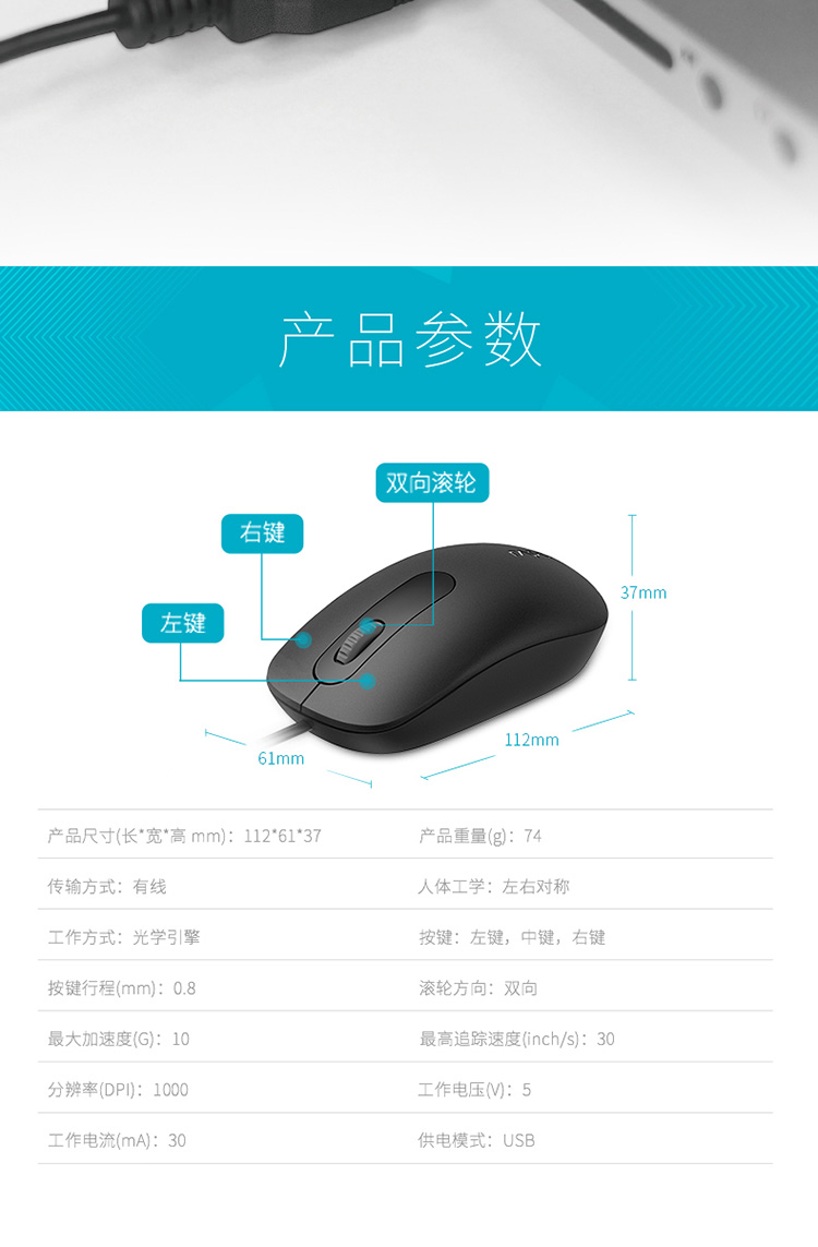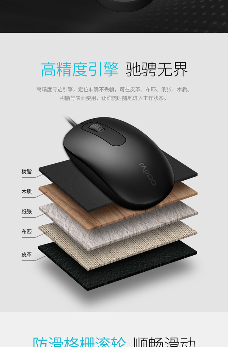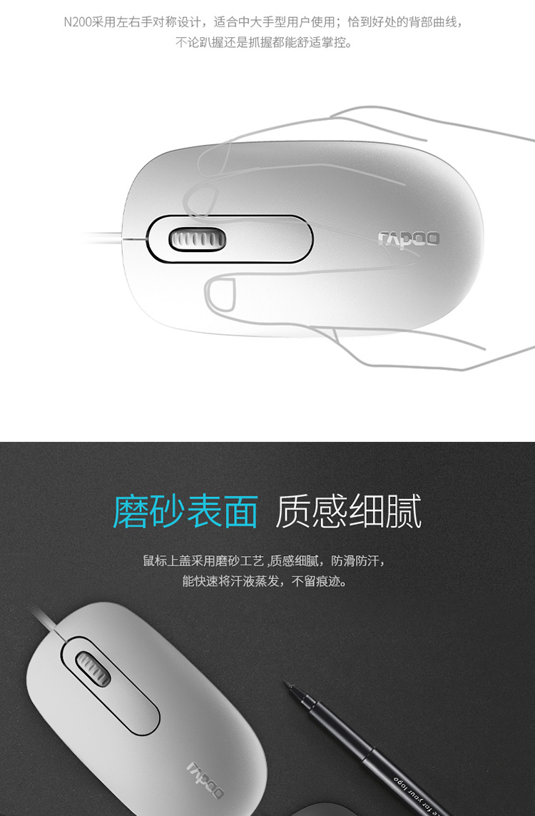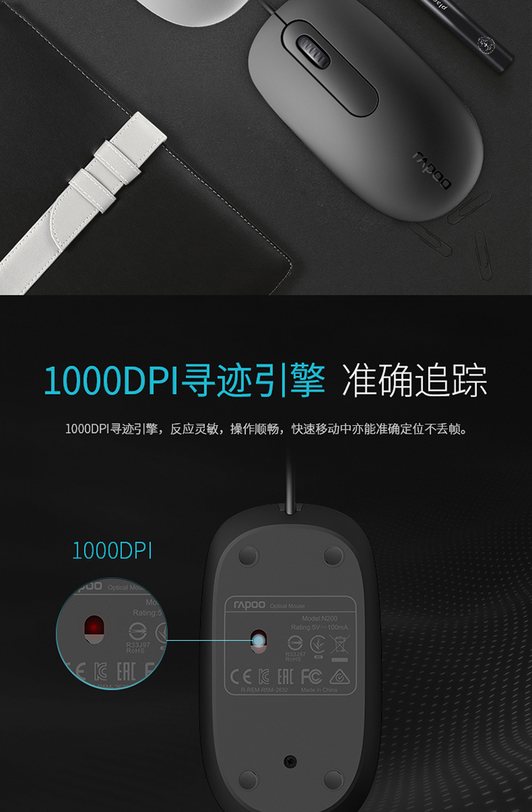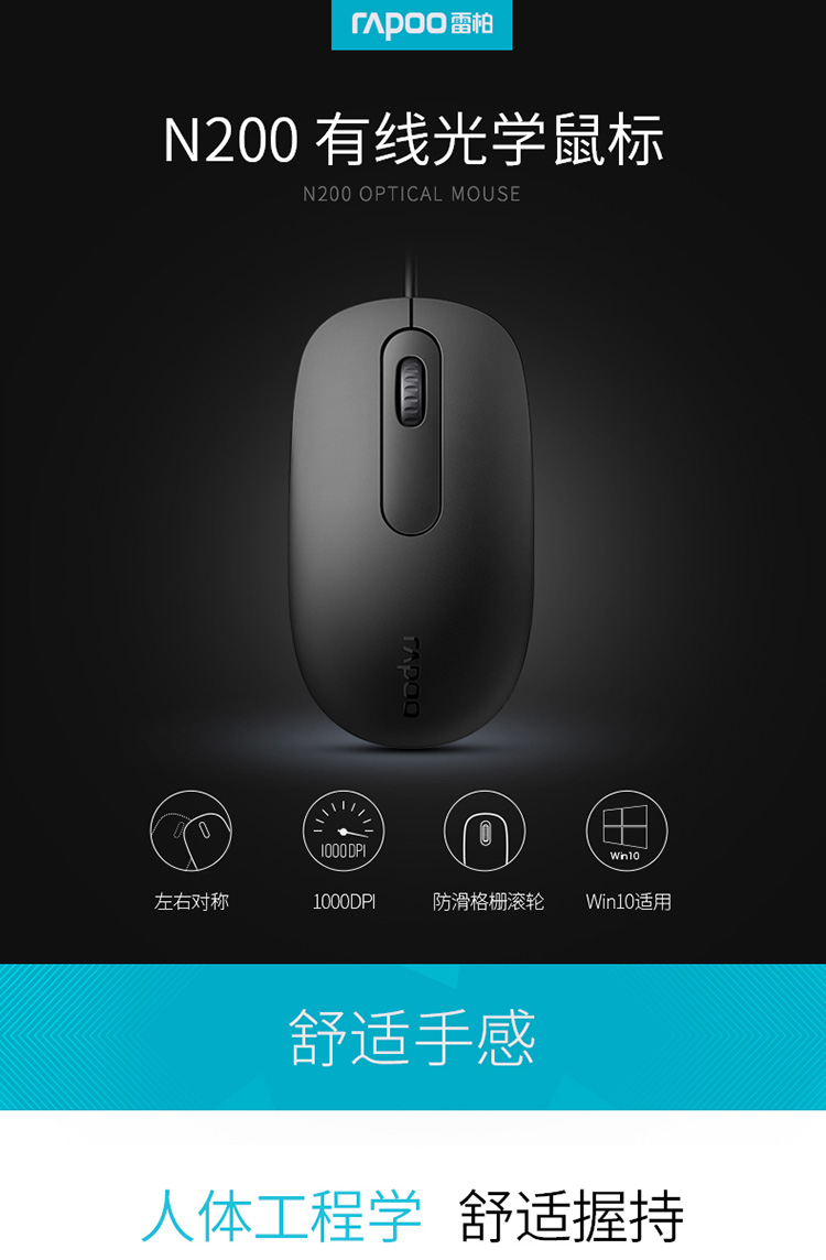 商品名称:雷柏N200有线鼠标 USB家用办公游戏笔记本台式电脑非静音鼠标/个 黑色