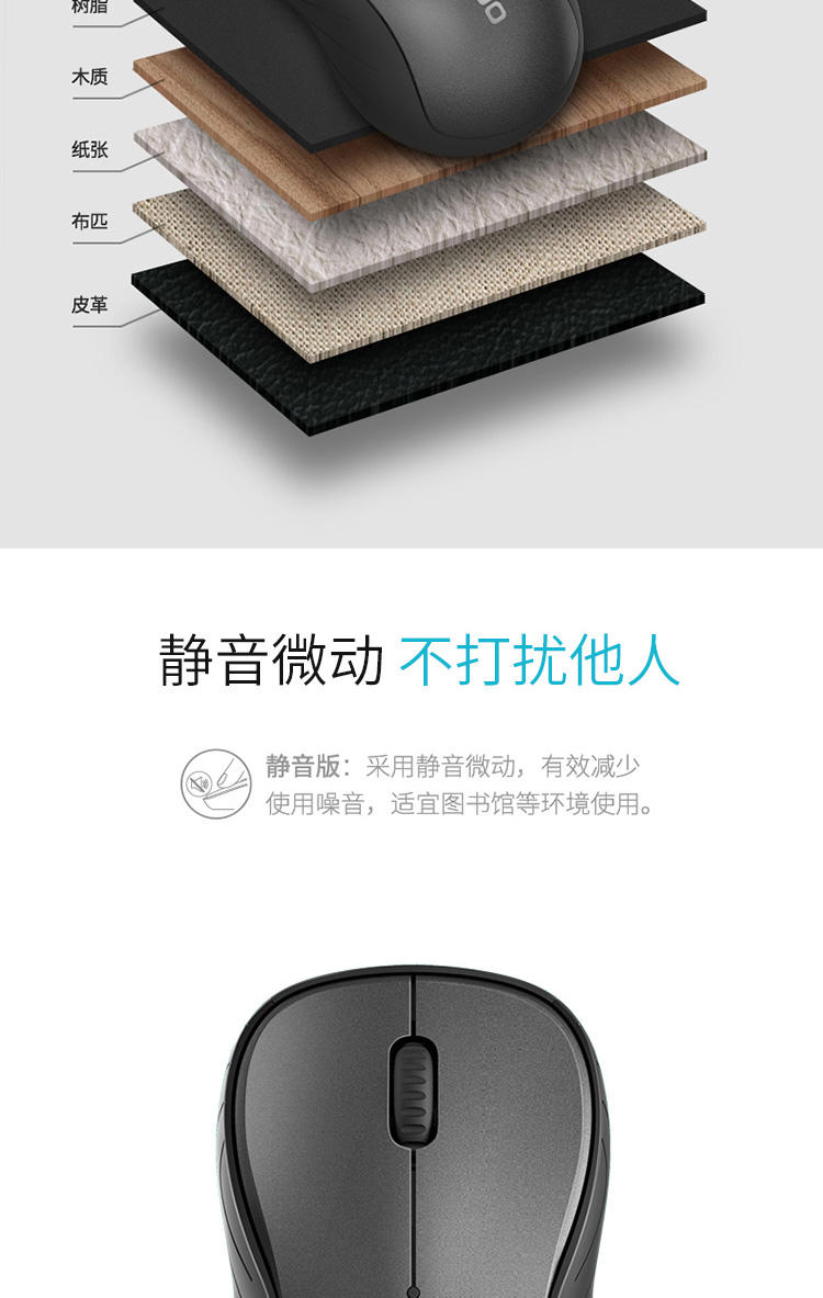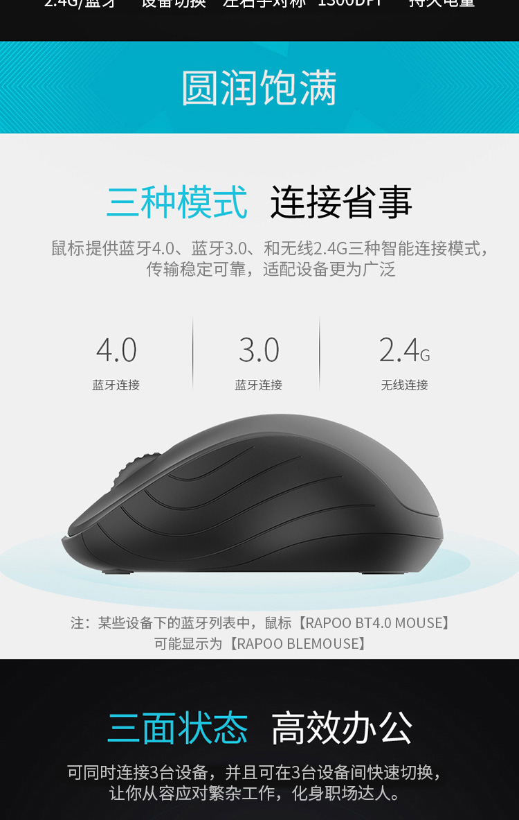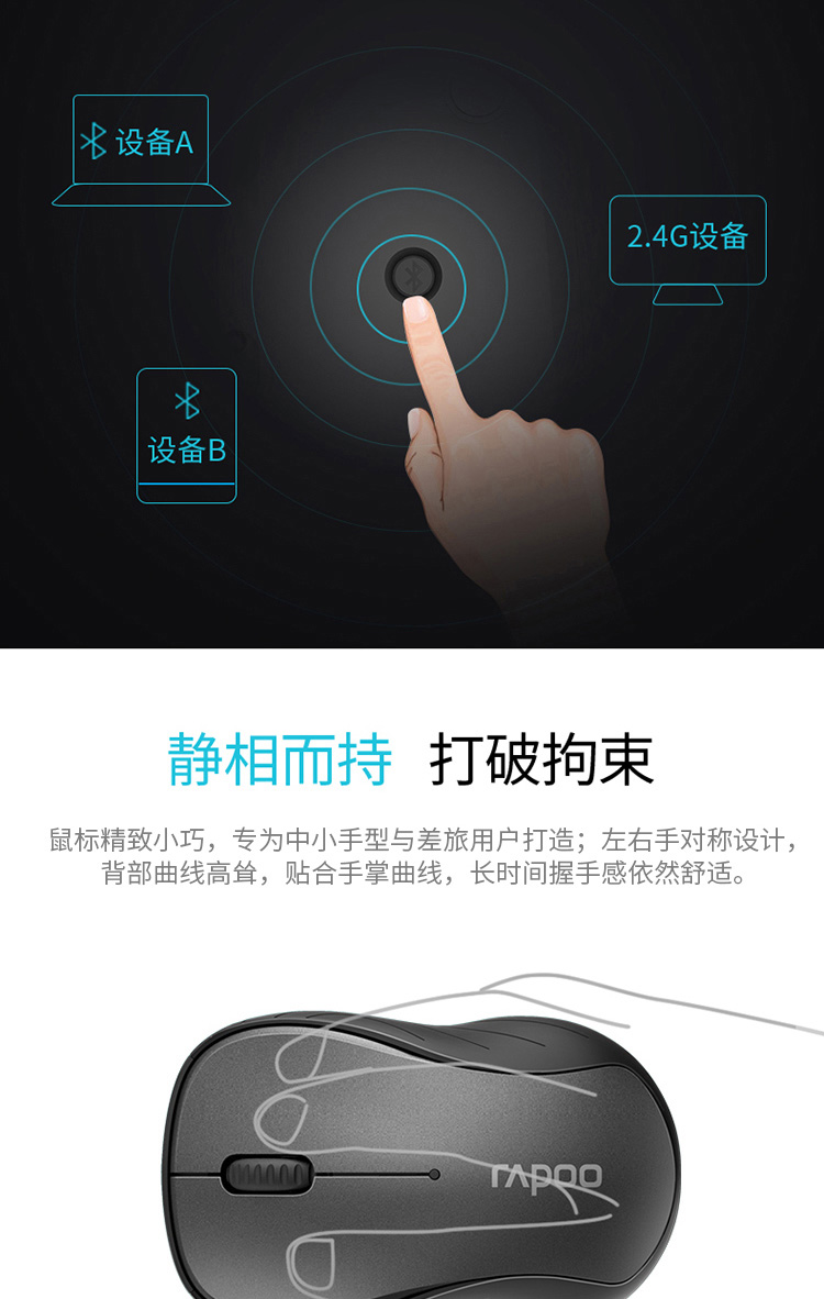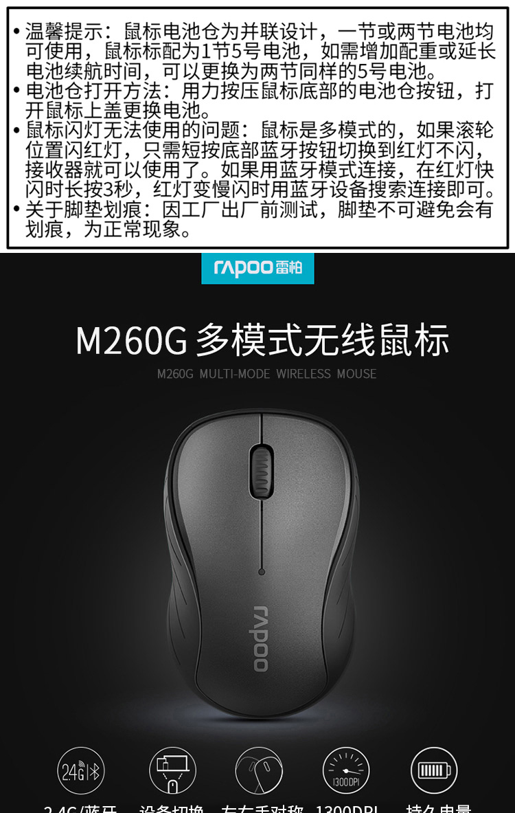 商品名称:雷柏M260G多模式无线蓝牙静音鼠标 深灰色
