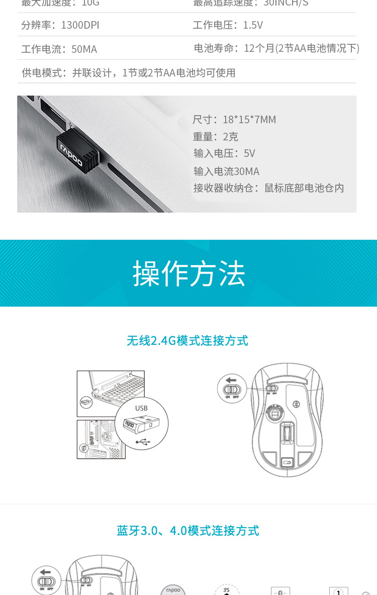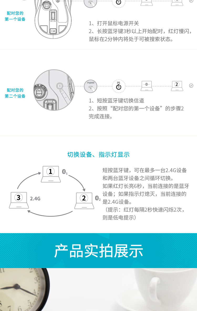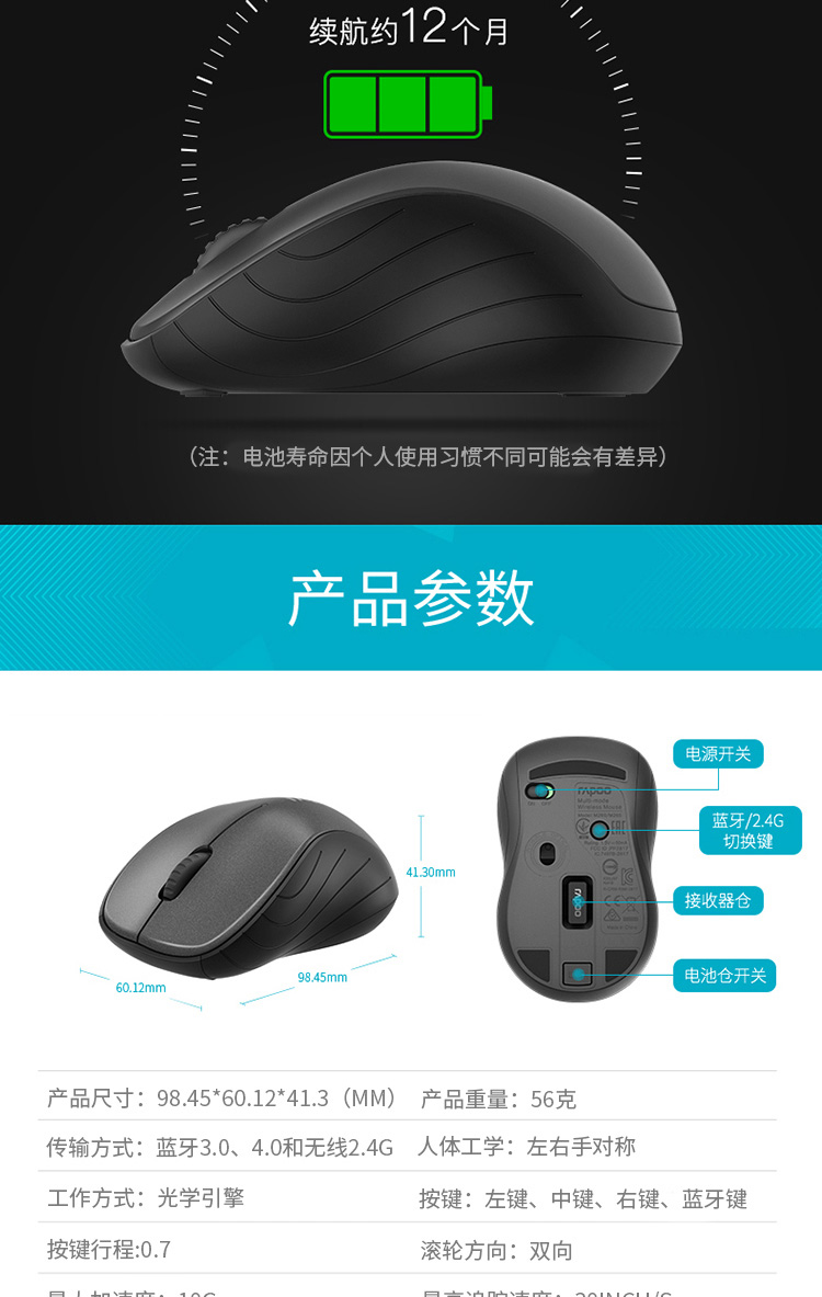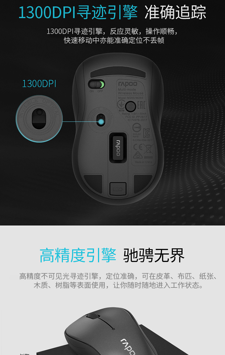 商品名称:雷柏M260G多模式无线蓝牙静音鼠标 深灰色