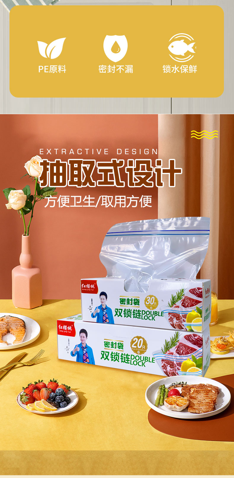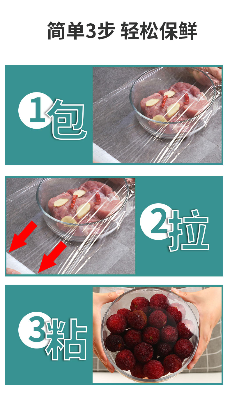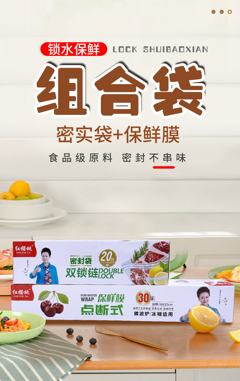 商品名称:保鲜膜密实袋组合家用经济装厨房微波炉耐高温蒸煮pe食品级专用(保鲜膜35cm*30m,密实袋20只,尺寸:210*220mm)) 透明