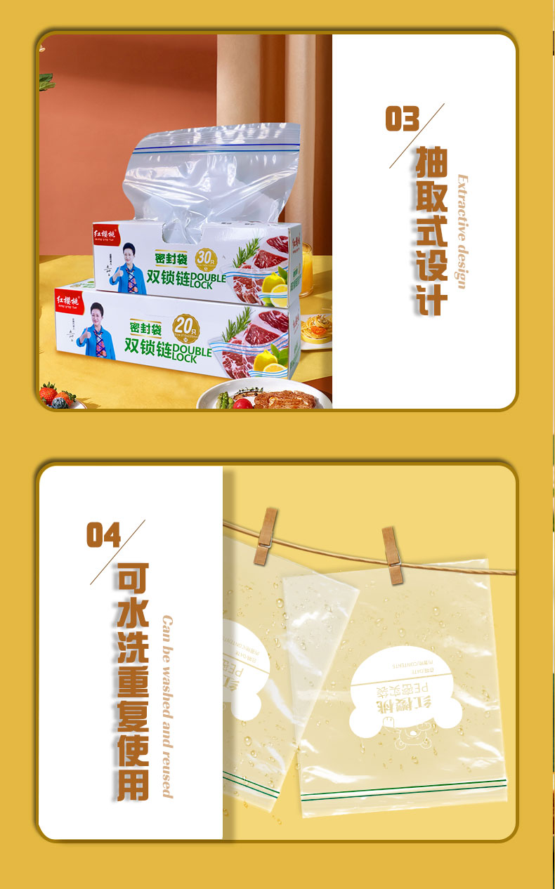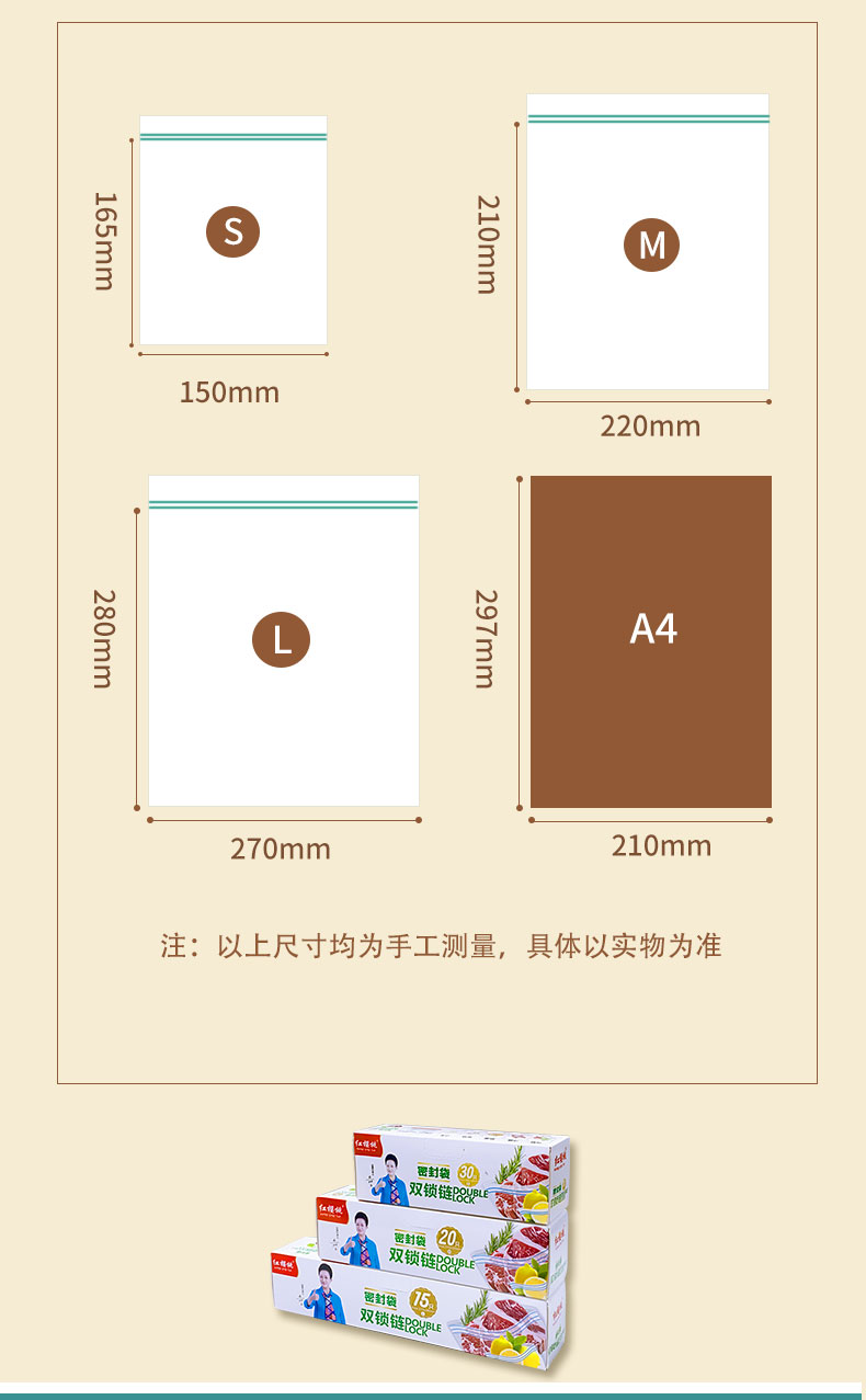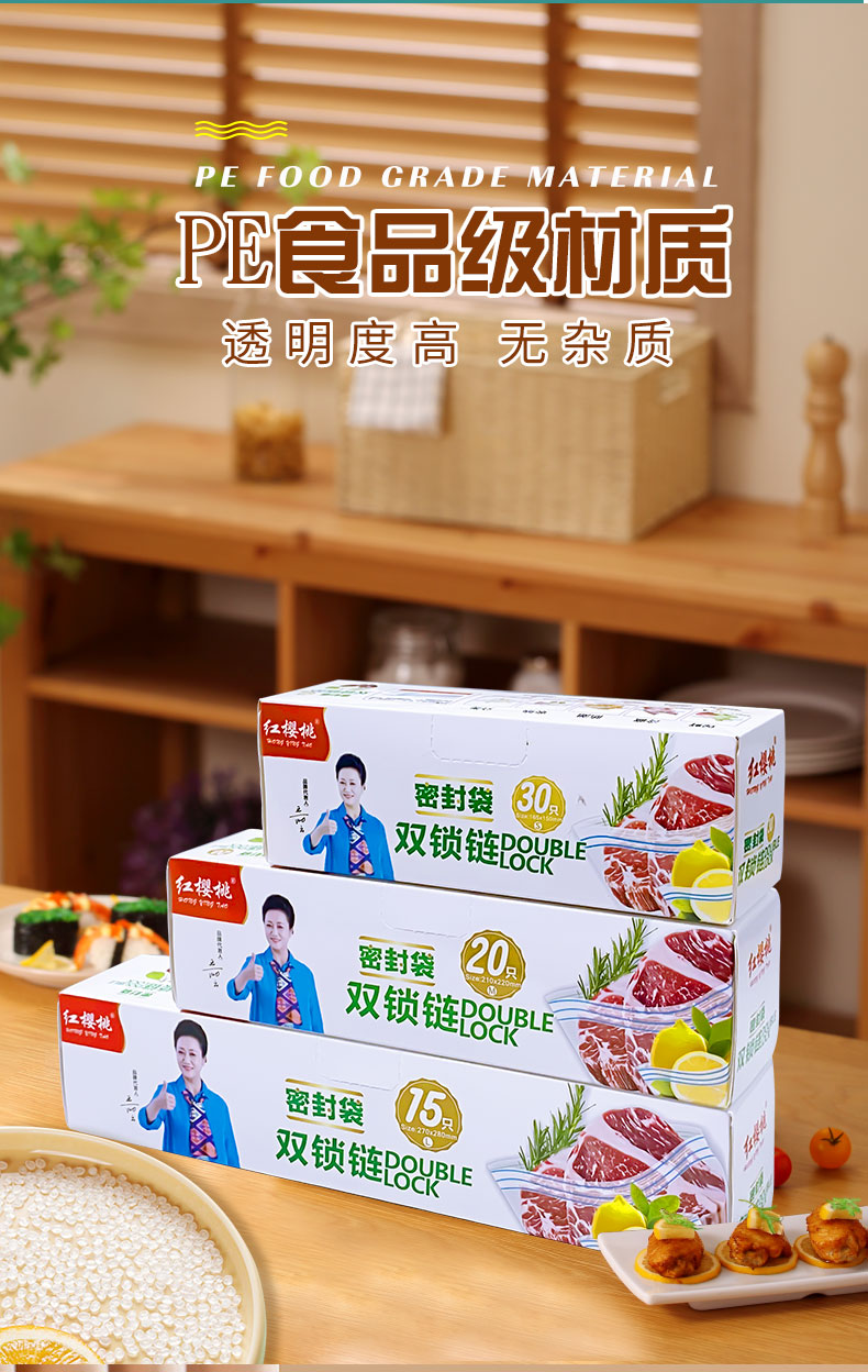商品名称:保鲜膜密实袋组合家用经济装厨房微波炉耐高温蒸煮pe食品级专用(保鲜膜35cm*30m,密实袋20只,尺寸:210*220mm)) 透明