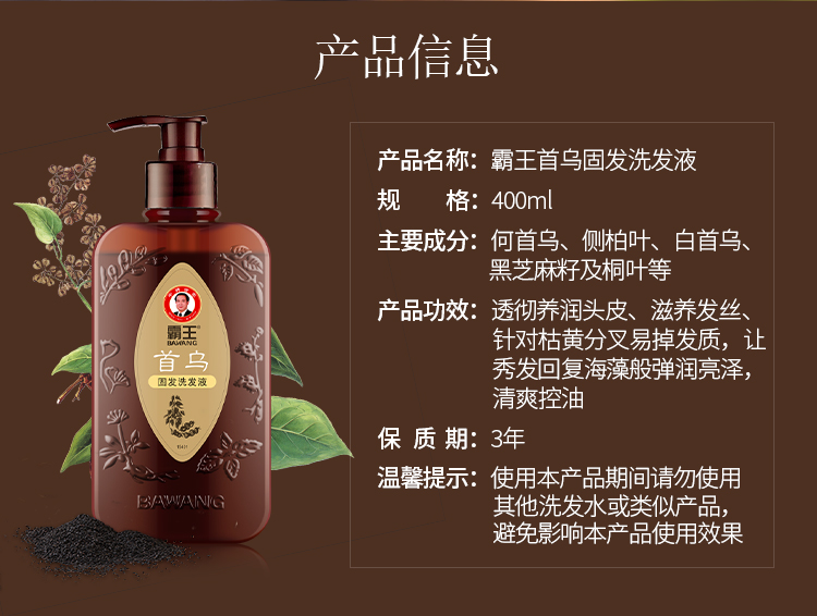 商品名称:霸王(BAWANG)首乌固发洗发液10101021766 400ml(单位:瓶) 褐色
