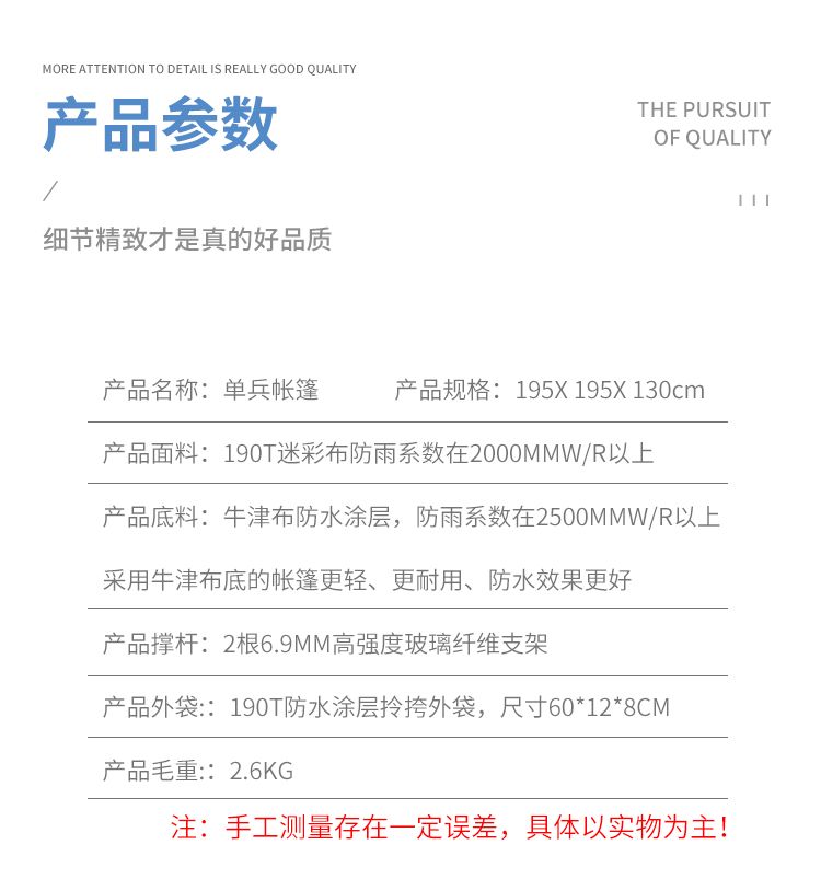 商品名称:欧达单人帐篷 户外露营单人防水防雨拉练帐篷 195*195*130cm 绿色