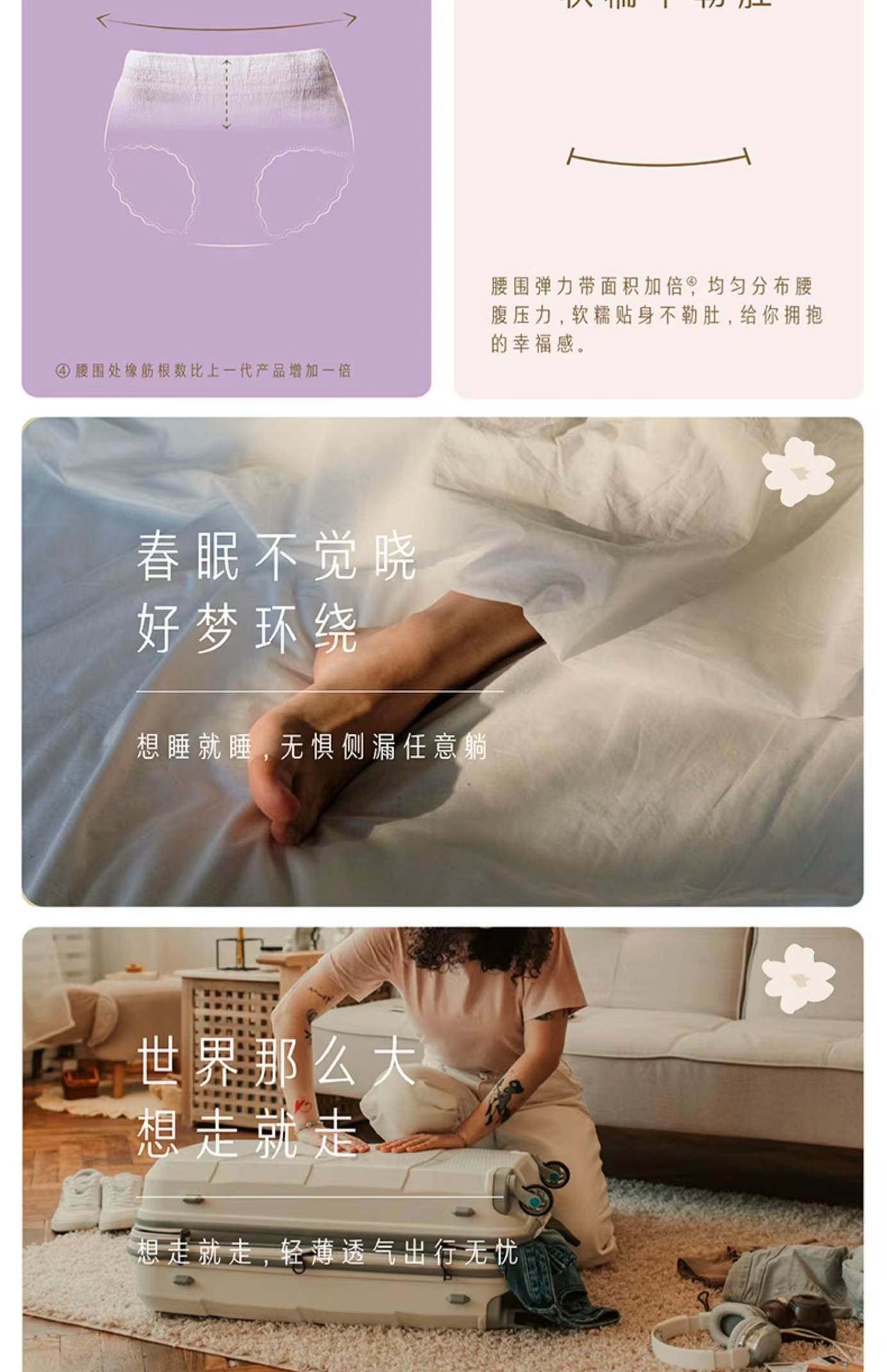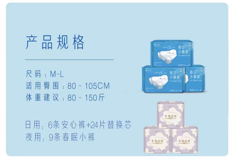 商品名称:她研社(Herlab) 春日小懒裤M-L码【日用安心裤6条+可替换芯24片】+春眠小裤9条 白色