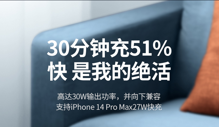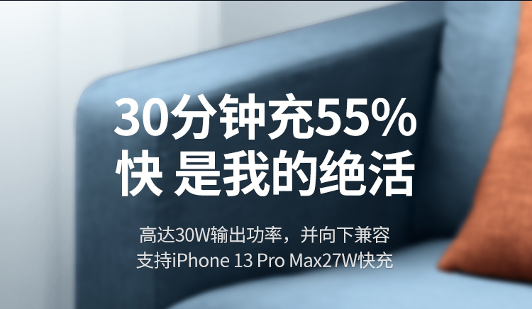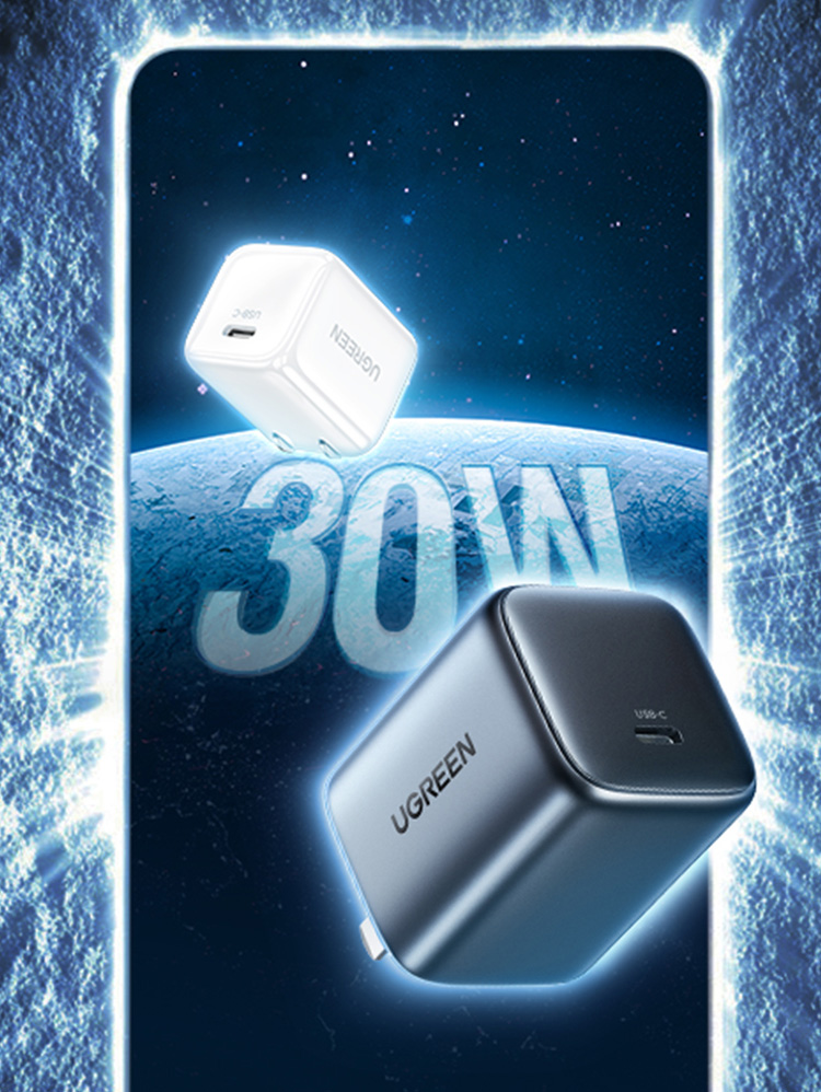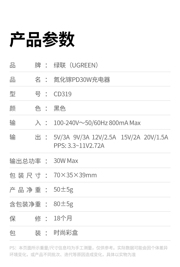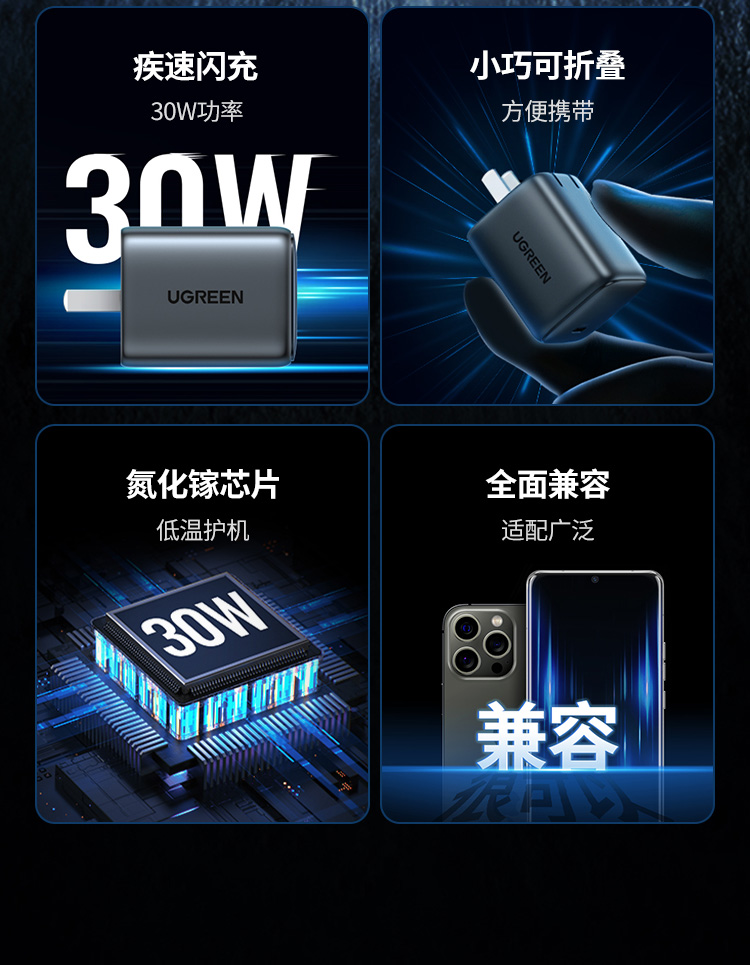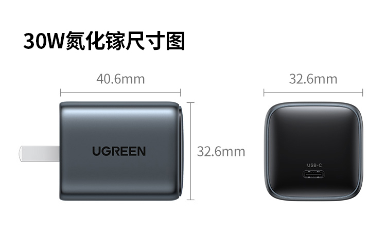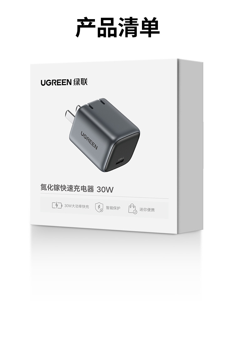 商品名称:绿联氮化镓PD30W快速充电器 CD319 Type-C快充头/个 铁灰色
