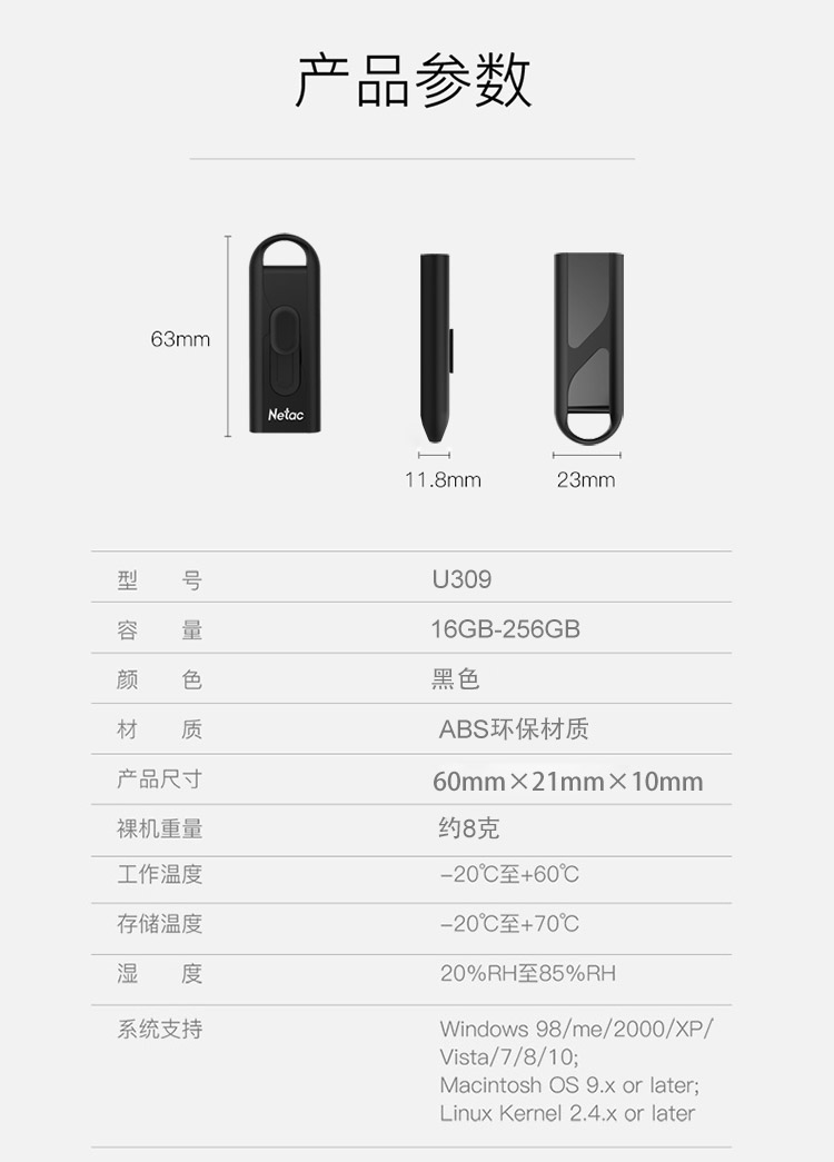 商品名称:朗科(Netac)U309-32GB 曜石推拉式优盘 USB3.0高速闪存盘 加密U盘 黑色 32G