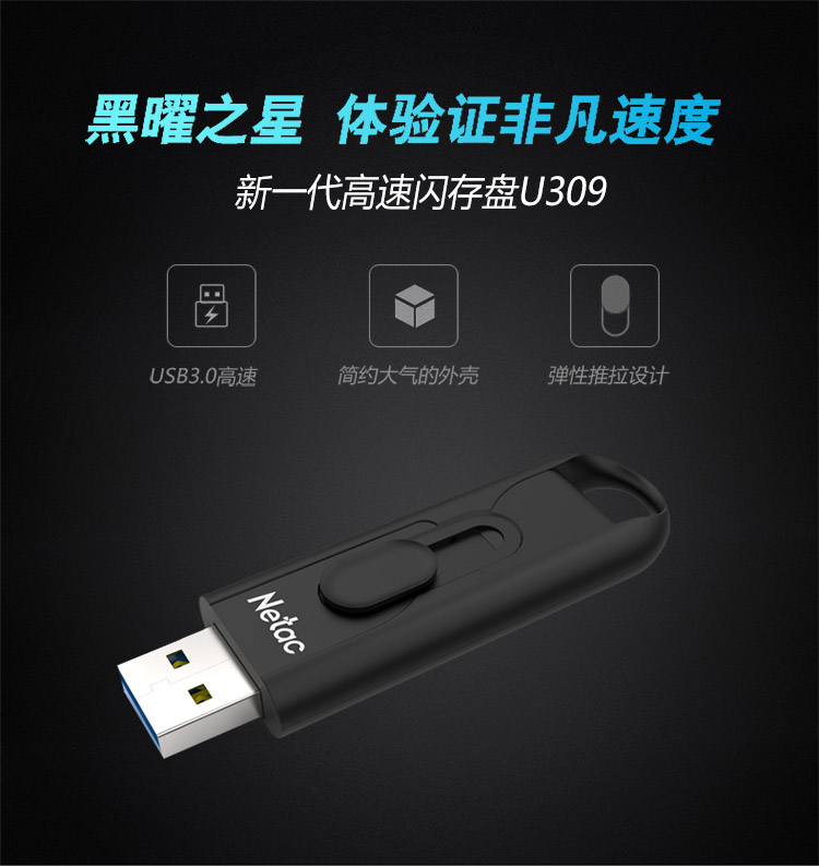 商品名称:朗科(Netac)U309-64GB 曜石推拉式优盘 USB3.0高速闪存盘 加密U盘 黑色 64G