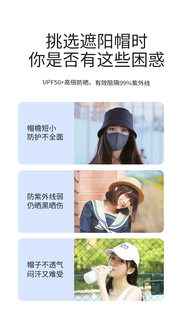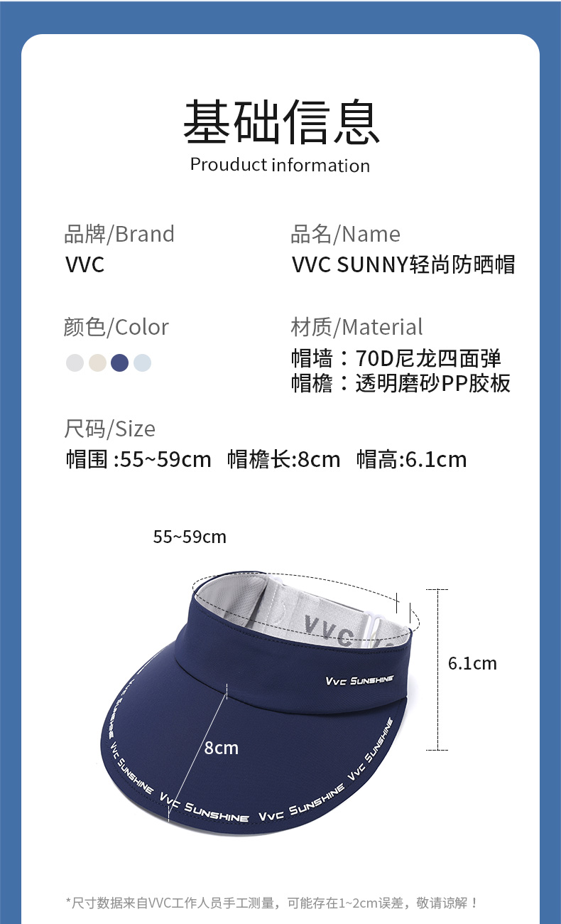 商品名称:VVC轻尚防晒帽VTM3S158 冰川蓝