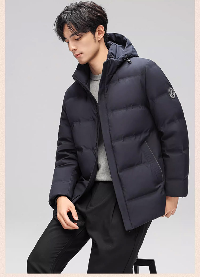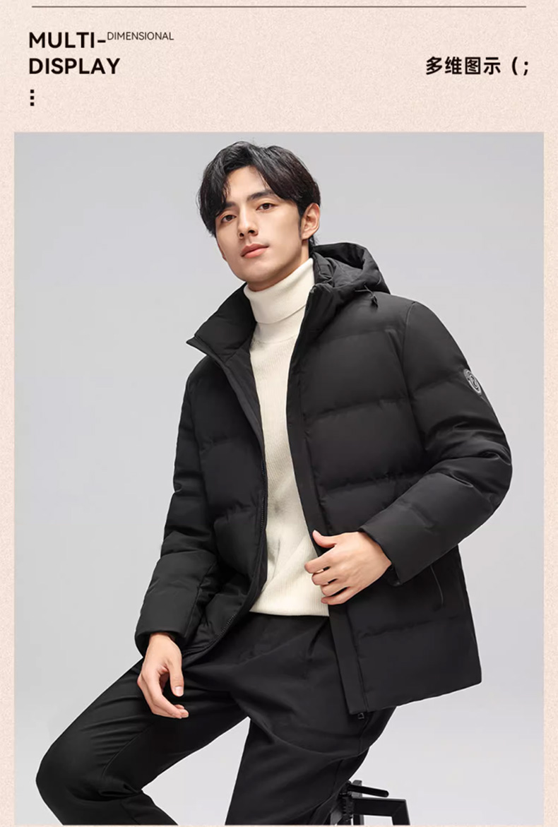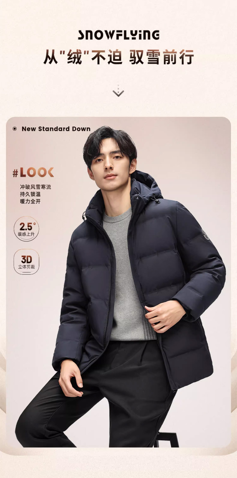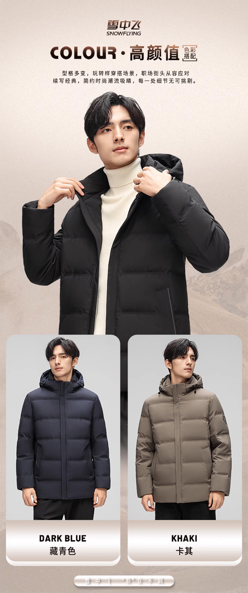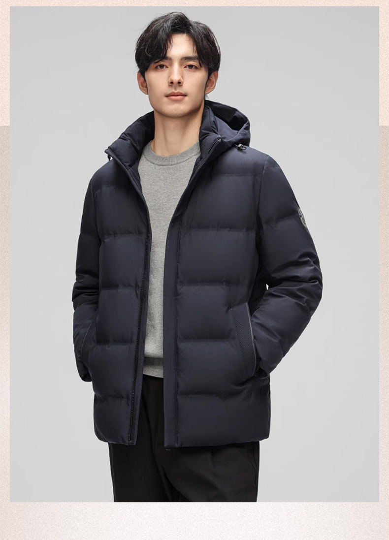 商品名称:雪中飞男士羽绒服短款冬季防风抗寒加厚保暖百搭连帽外套X40143173F(单位:件) 藏青色 180