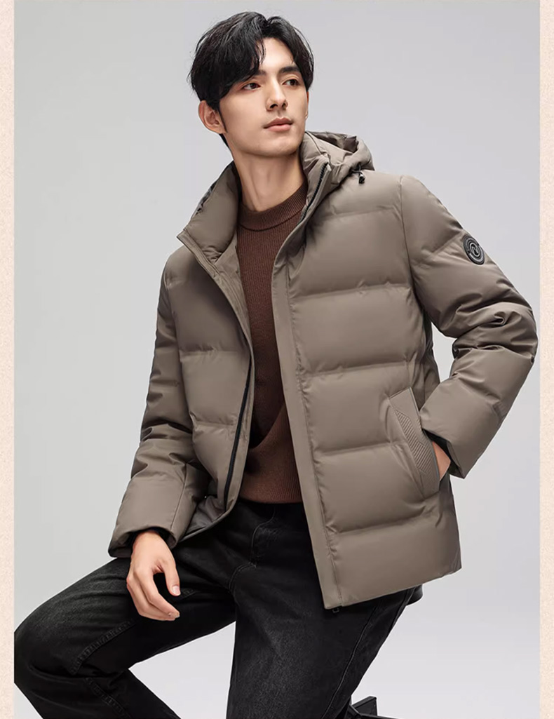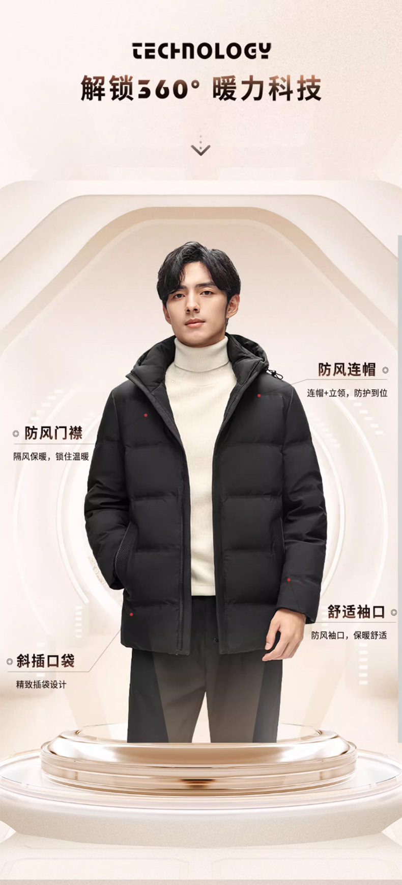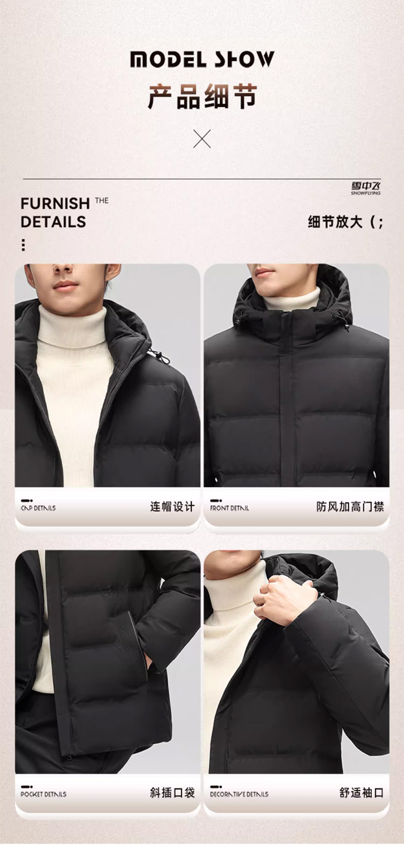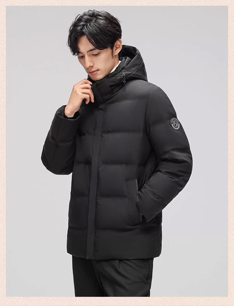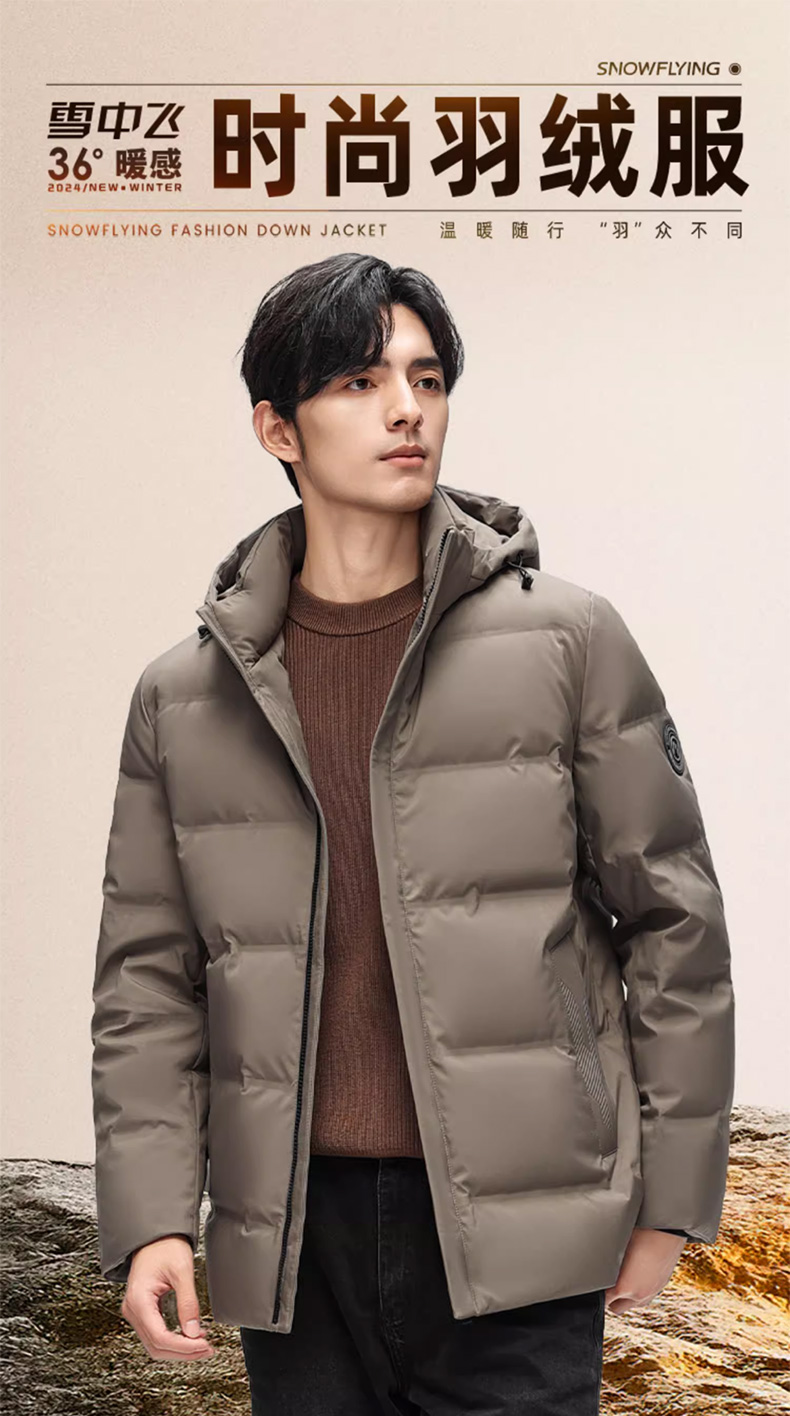 商品名称:雪中飞男士羽绒服短款冬季防风抗寒加厚保暖百搭连帽外套X40143173F(单位:件) 藏青色 180