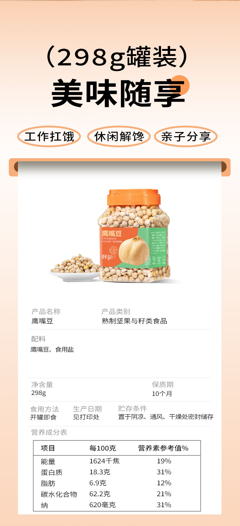商品名称:鲜记 鹰嘴豆298g(单位:罐) 炫橙色