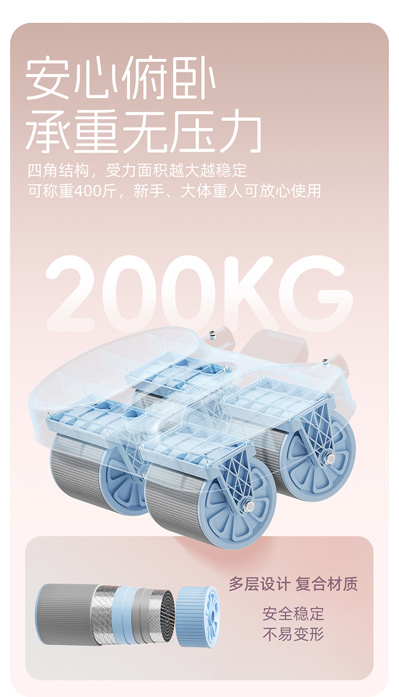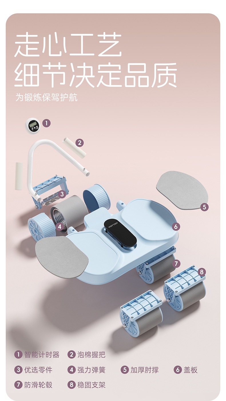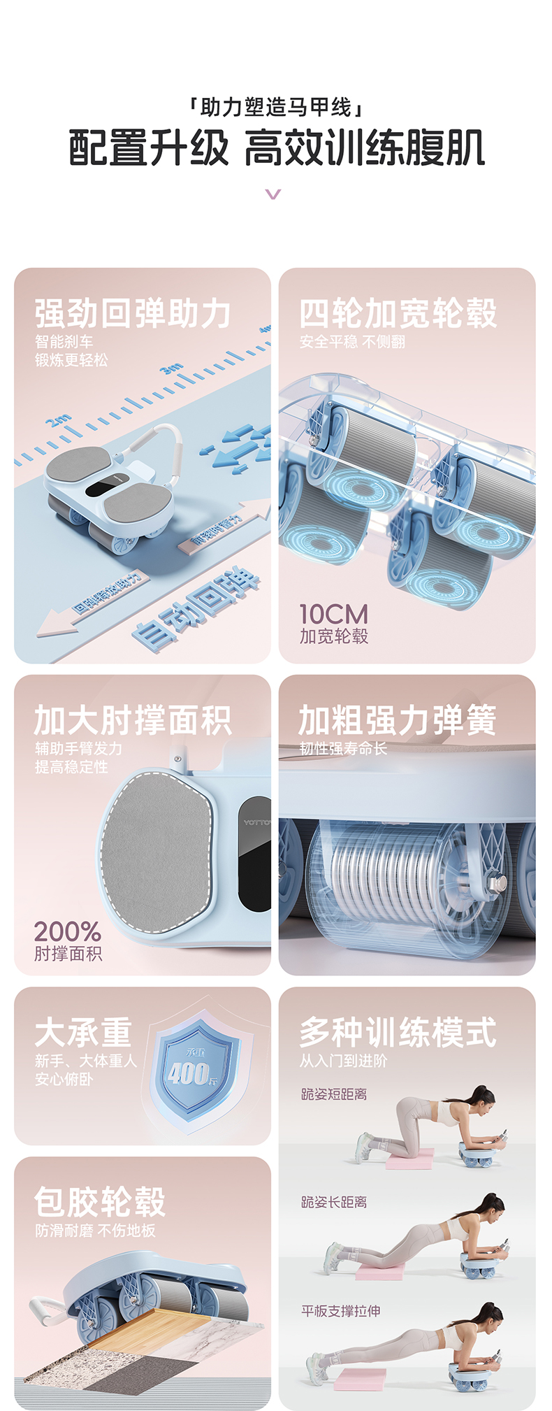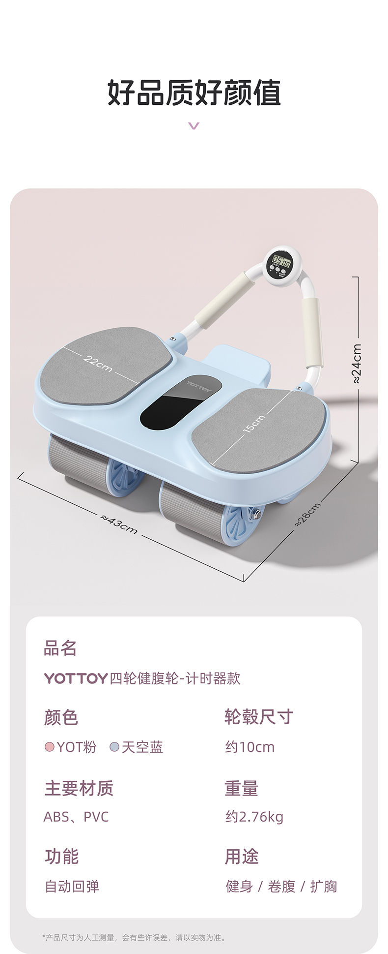 商品名称:yottoy新款四轮健腹轮自动回弹加大加宽腹肌健腹腹部燃脂神器健身器材/个 蓝色