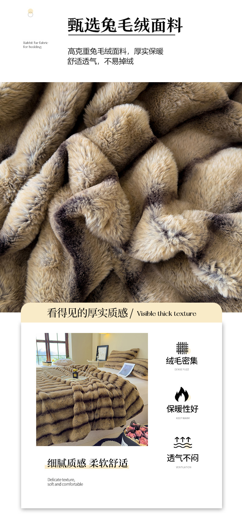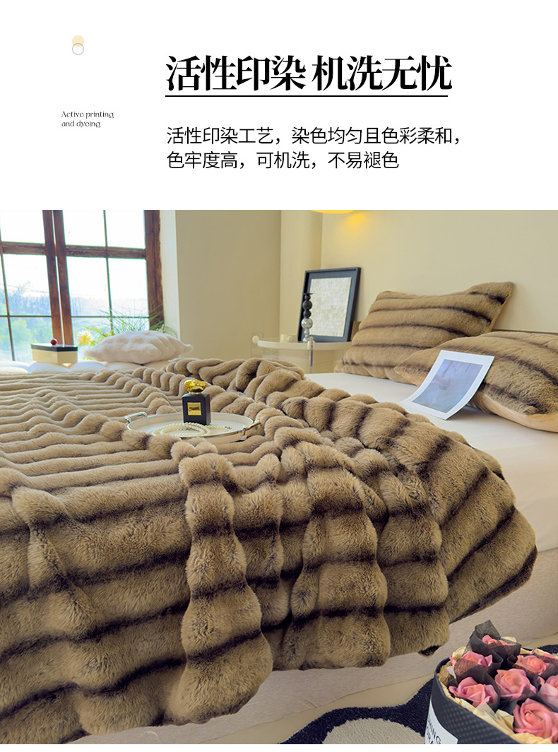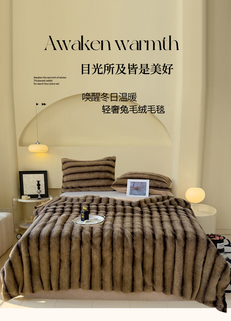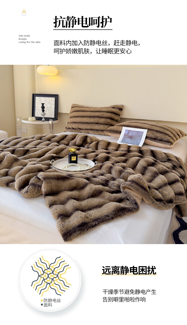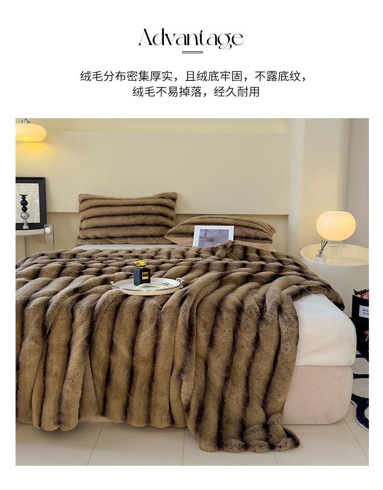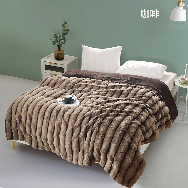 商品名称:保罗彼得PL-M24519轻奢兔毛绒毛毯200*230cm(单位:件) 咖啡色