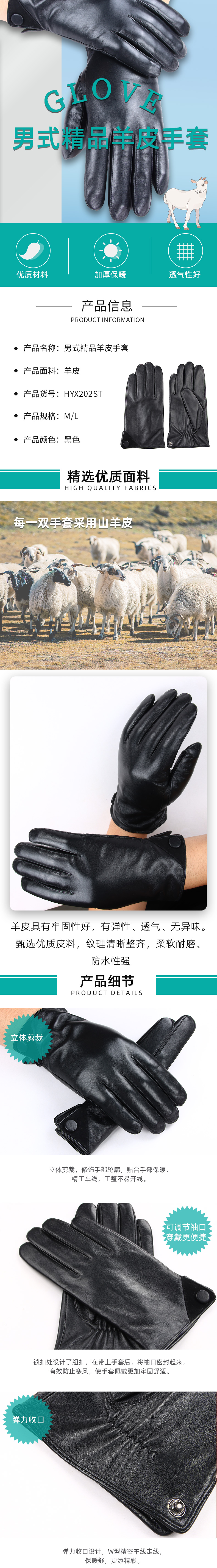 商品名称:恒源祥男式精品羊皮手套HYX202ST/M/L 黑色-L