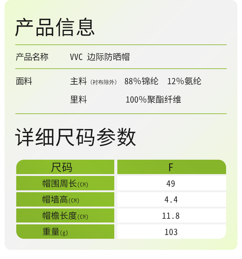 商品名称:VVC 边际防晒帽VGM3S208(单位:顶) 简约白