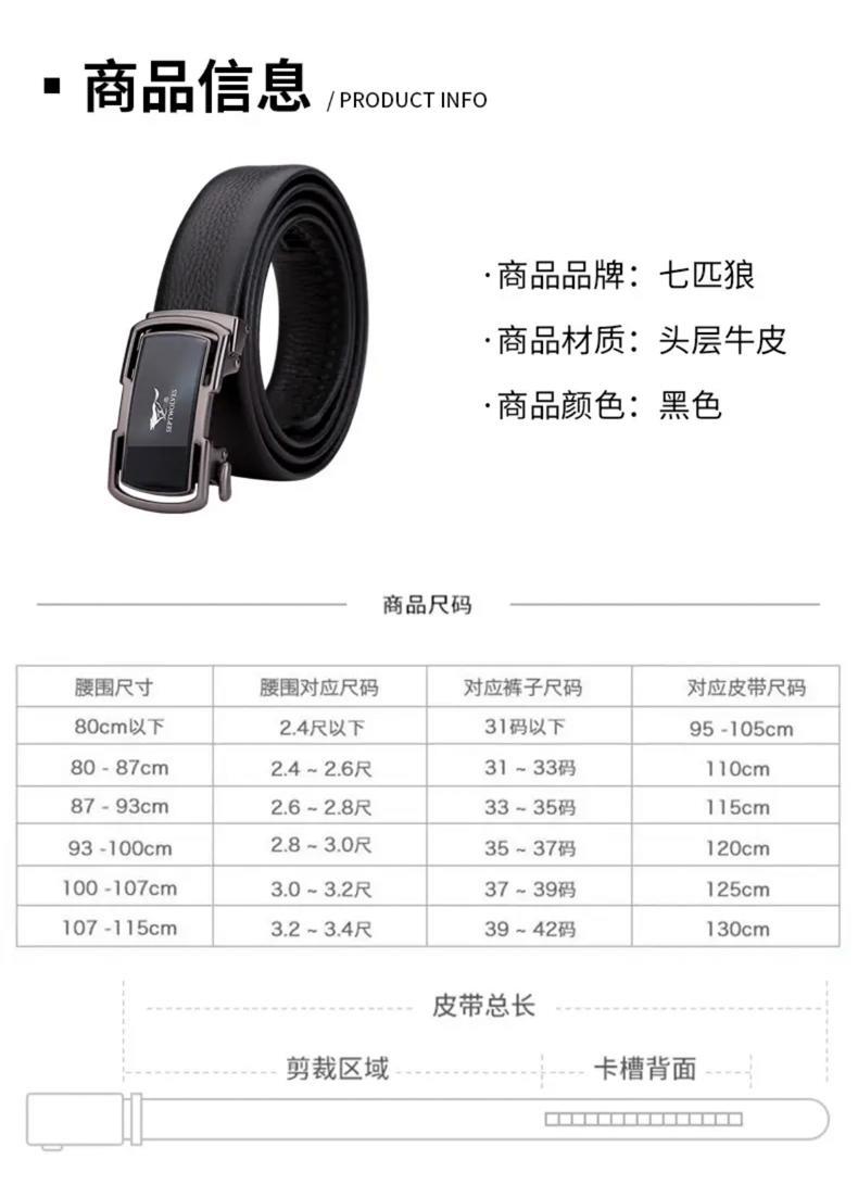 商品名称:七匹狼皮带男士新款潮流真皮年轻商务牛皮裤带生日送男友礼物 黑色(单位:条) ZA7240-1
