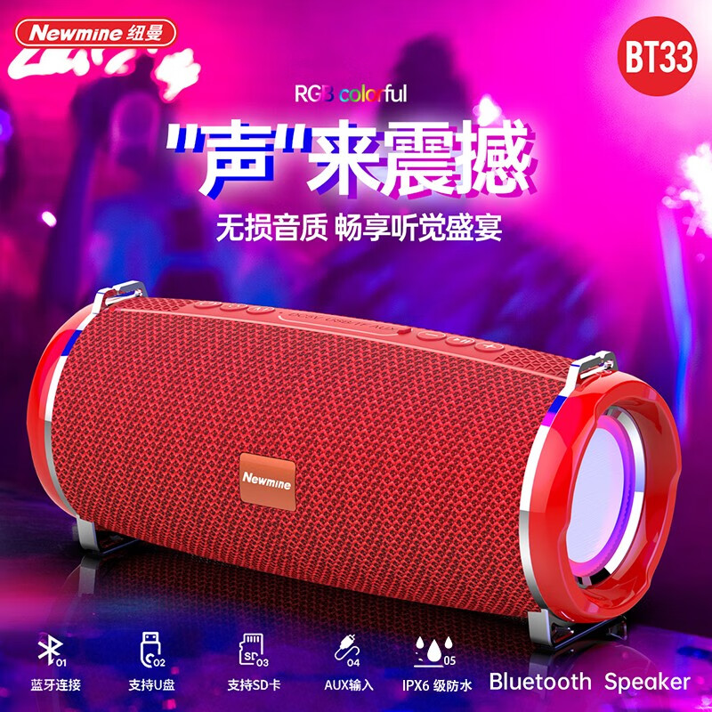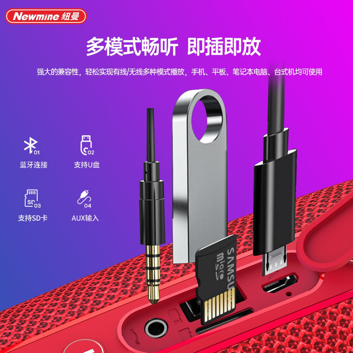 商品名称:纽曼(Newmine) 蓝牙音箱BT33无线音箱便携式全屏炫彩红色(单位:个) 红色