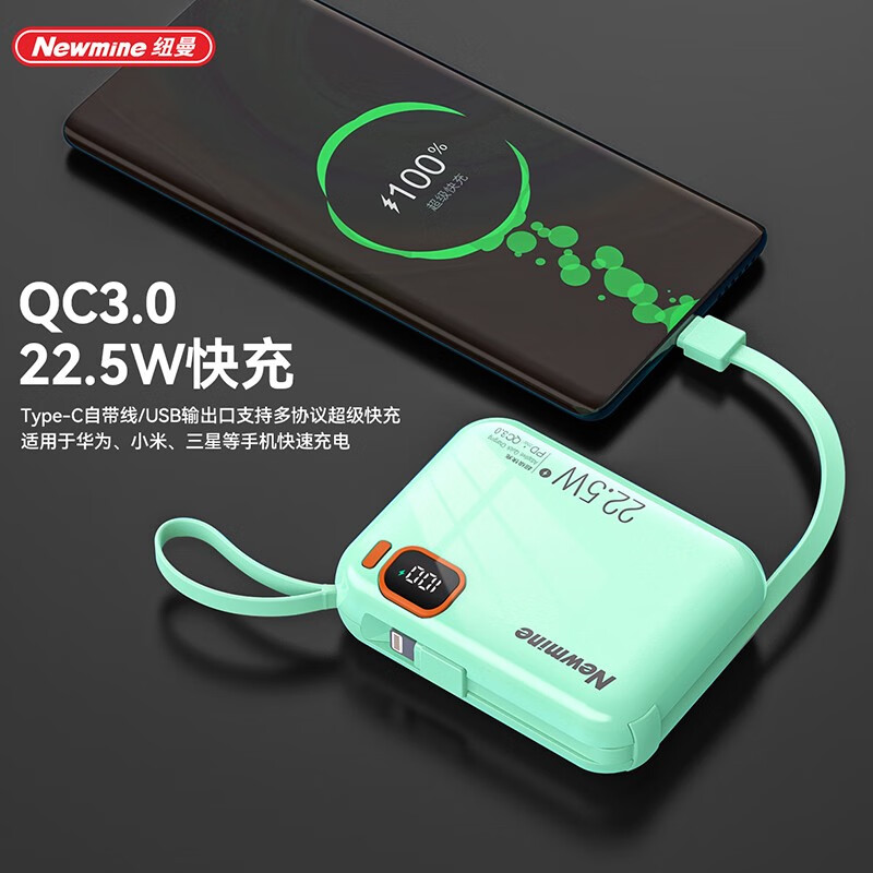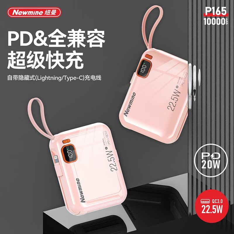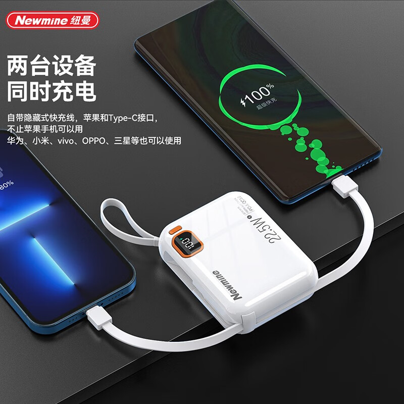 商品名称:纽曼P165快充22.5W自带线1万毫安充电宝(单位:个) 白色