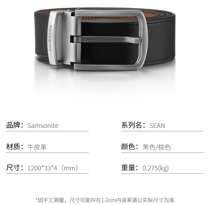 商品名称:新秀丽牛皮革双扣皮带礼盒-59Q*09008(单位:盒) 黑色