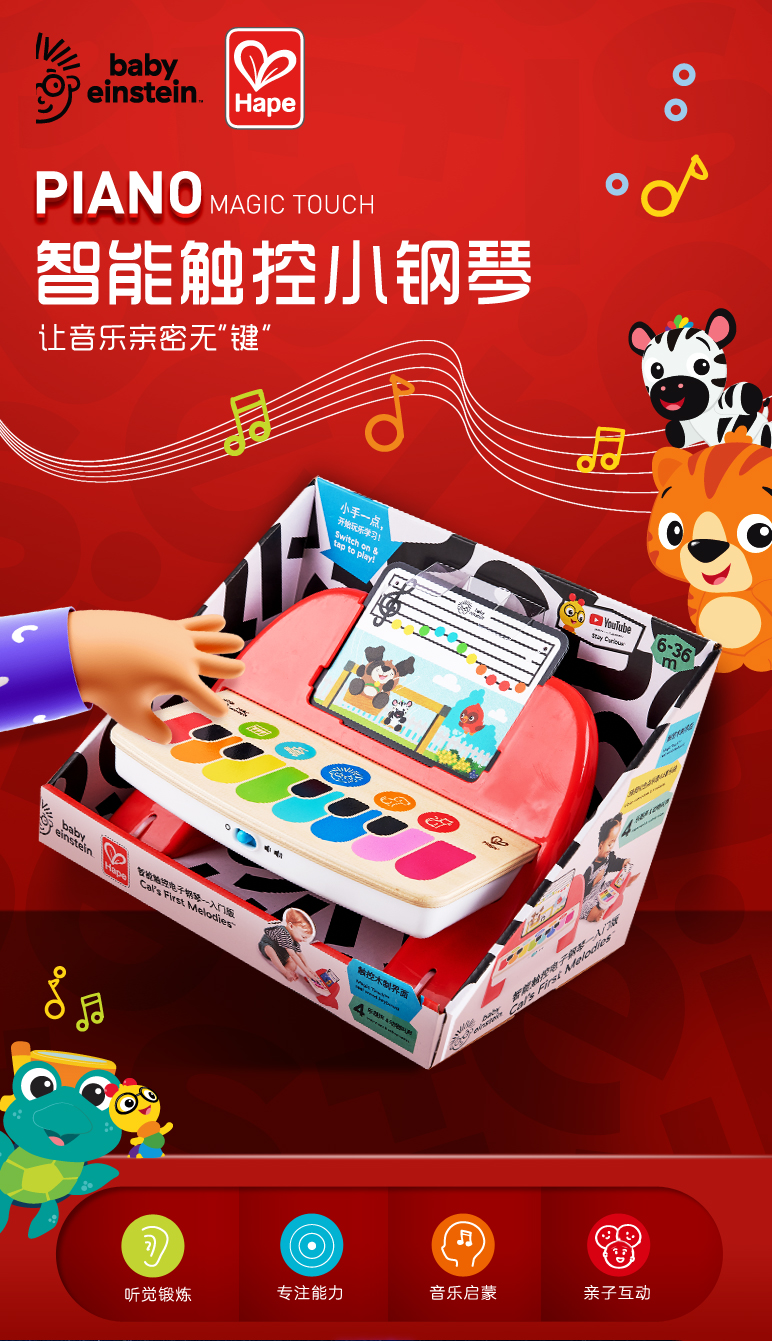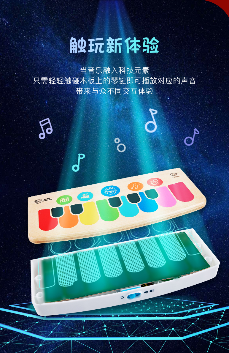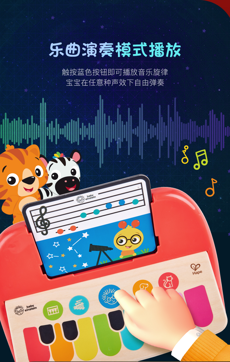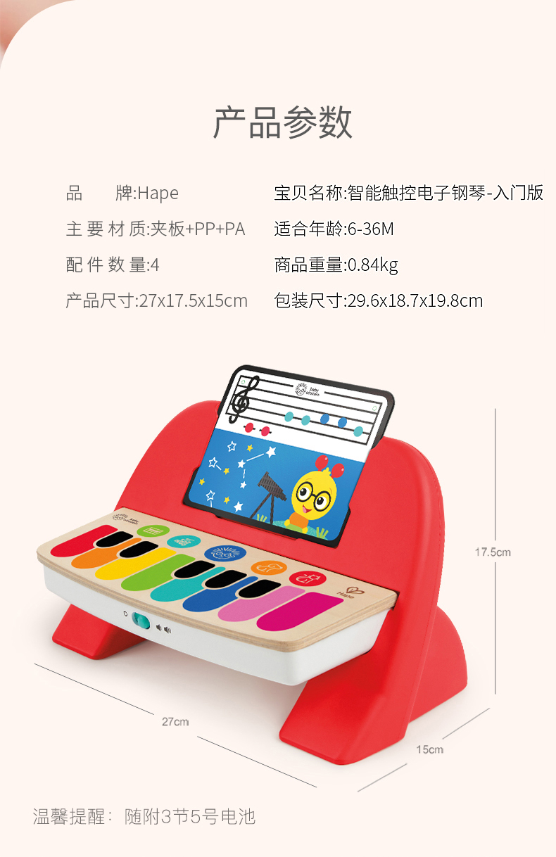 商品名称:Hape(德国)800894 6个月以上宝宝音乐启蒙早教玩具 智能触控电子钢琴入门版(单位:个) 混色