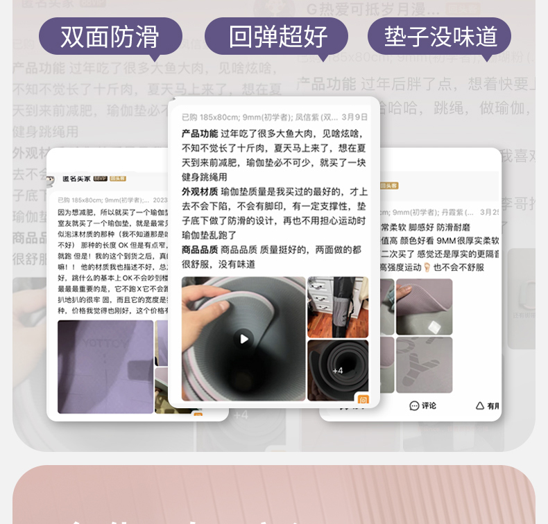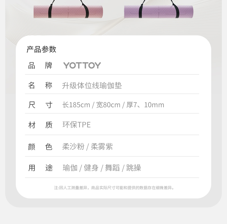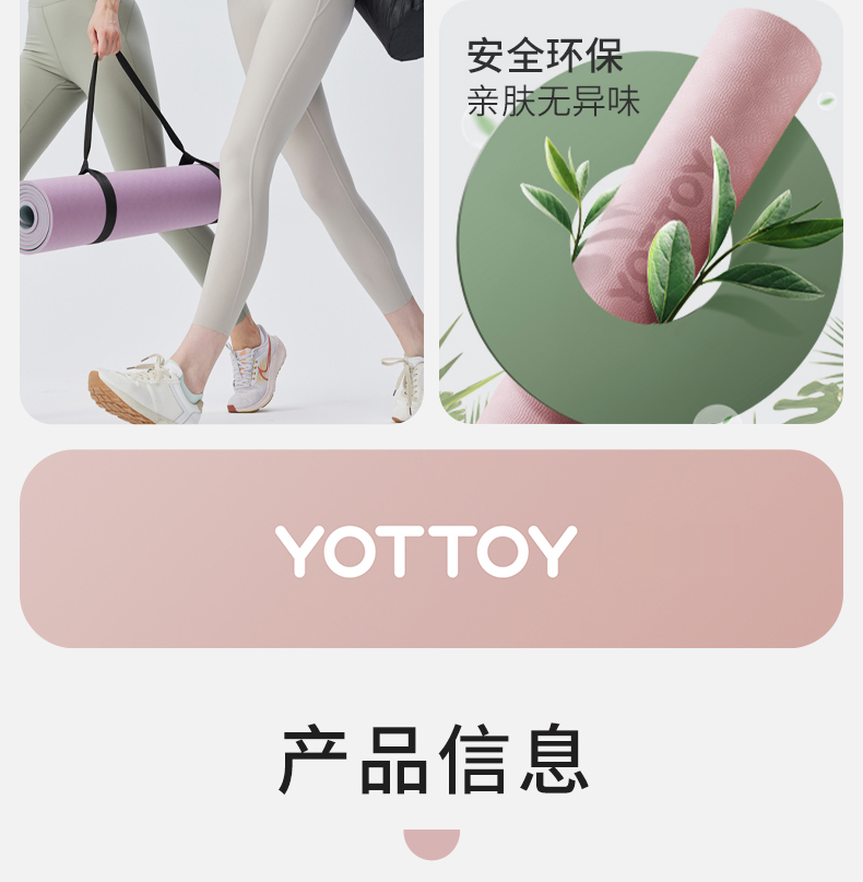 商品名称:yottoy瑜伽垫 男女士健身垫TPE专业防滑隔音减震加宽加厚训练运动垫185*80cm【升级体/个 粉色