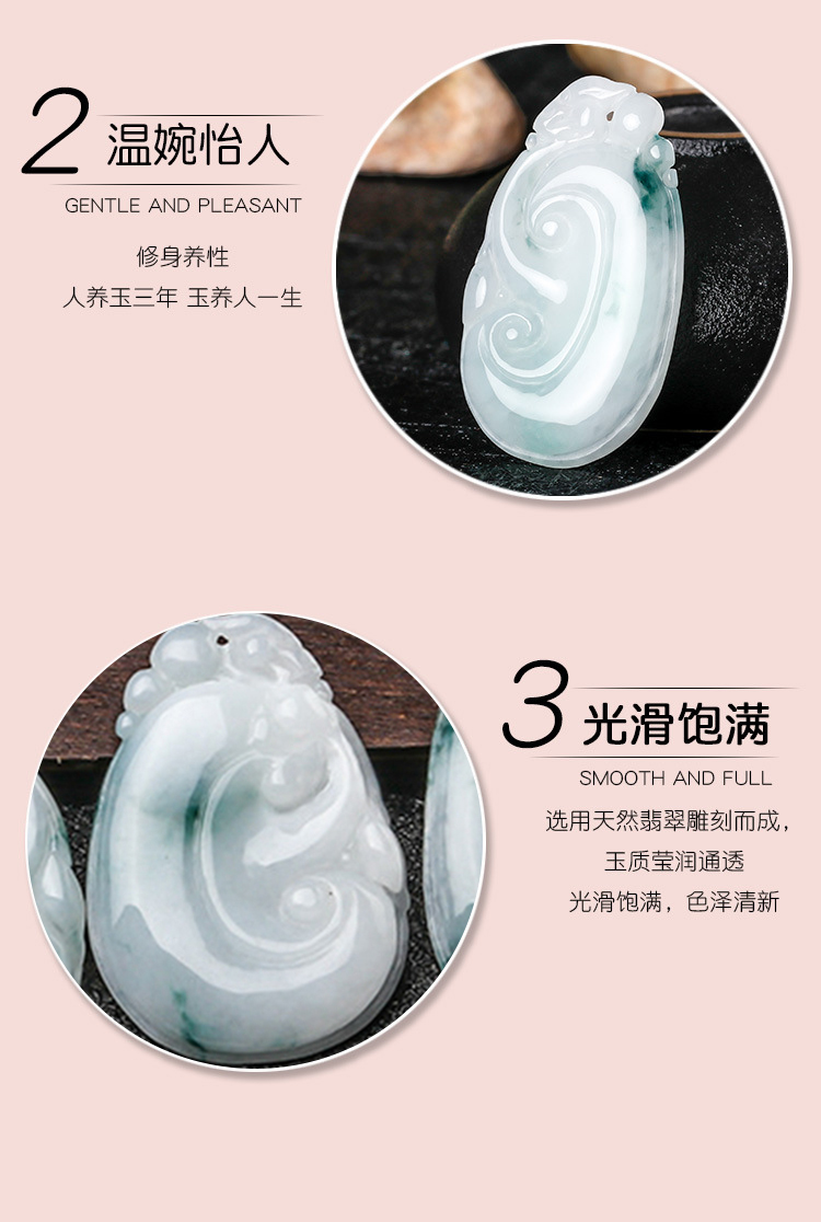 商品名称:行金银中天然A货翡翠吊坠女玉如意挂件玉吊坠送礼表白生日礼物/件 浅绿色