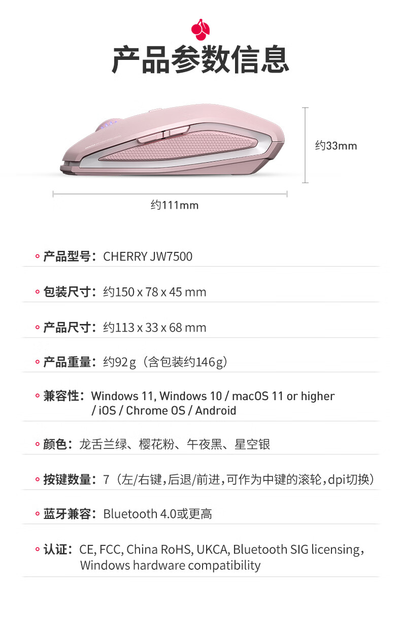 商品名称:CHERRY樱桃 蓝牙办公鼠标 战帝 星空银/个 星空银
