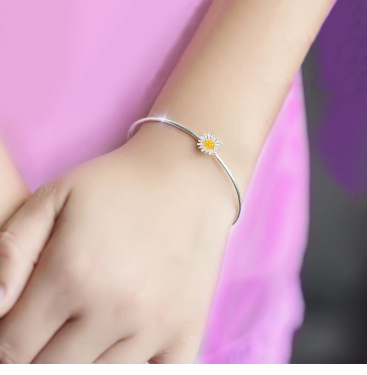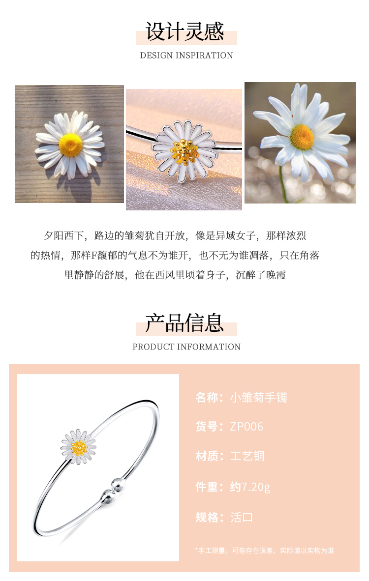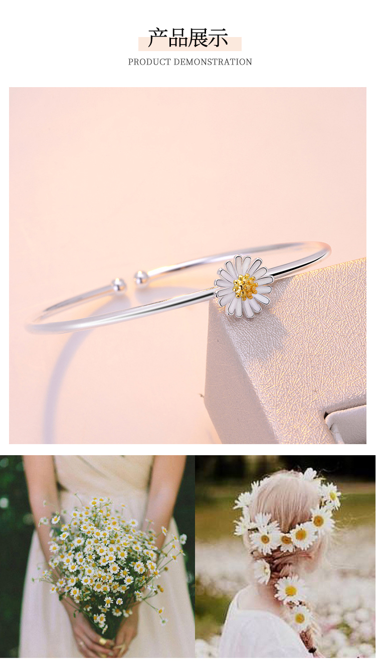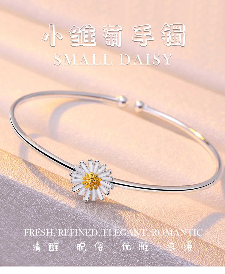 商品名称:GZUAN古钻珠宝 小雏菊手镯 森系女生配饰 韩版 时尚饰品 菊花手链手镯 ZP006/件 银色