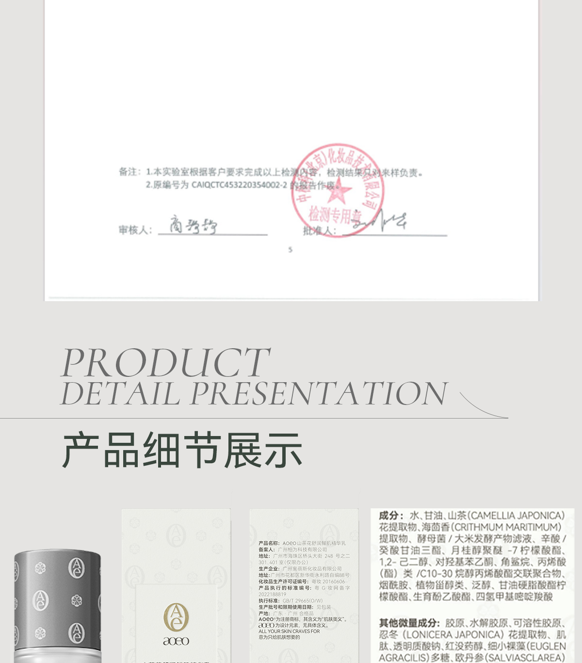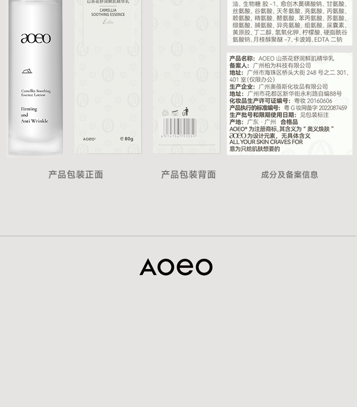 商品名称:AOEO山茶花舒润鲜肌精华乳80g/瓶 钢琴白