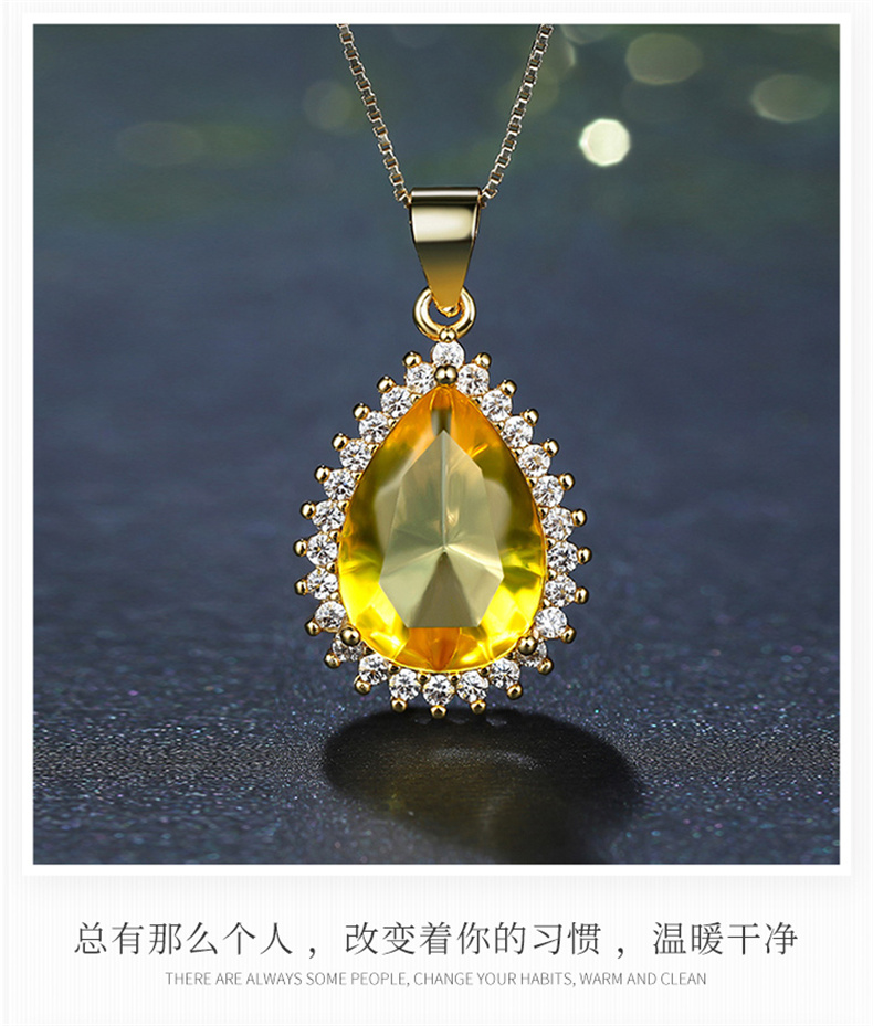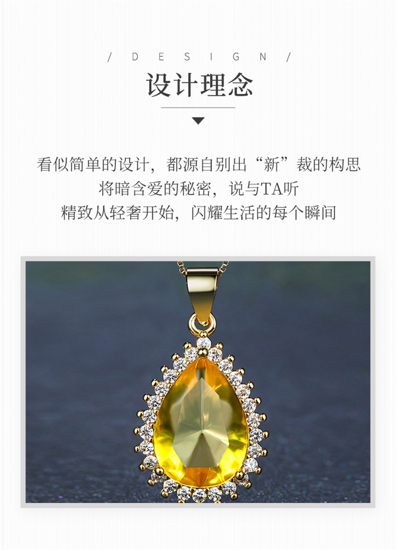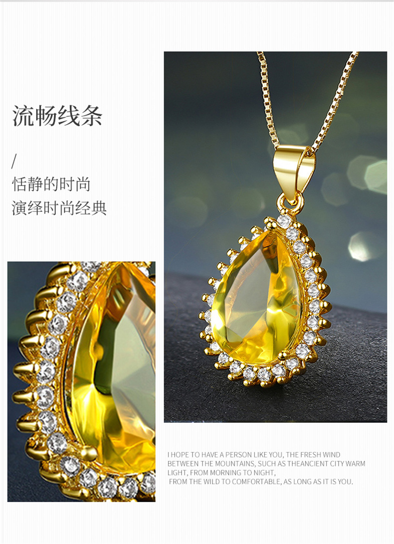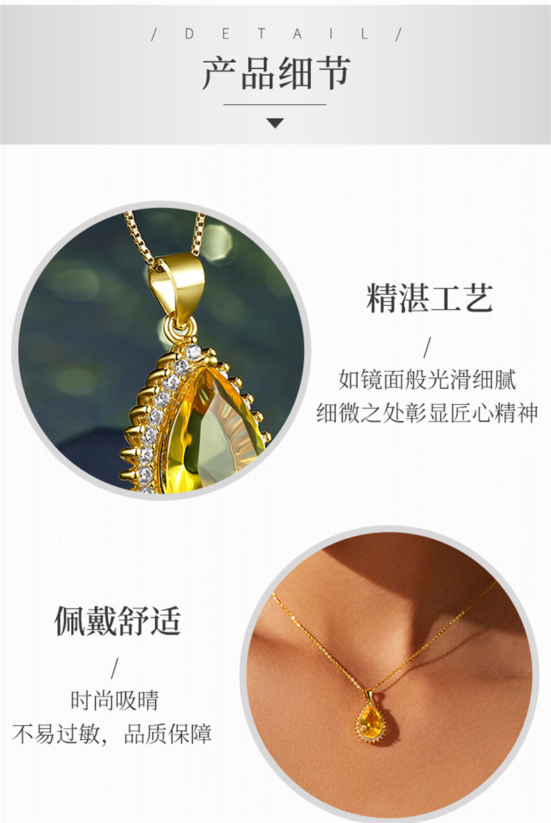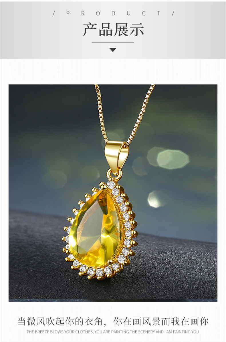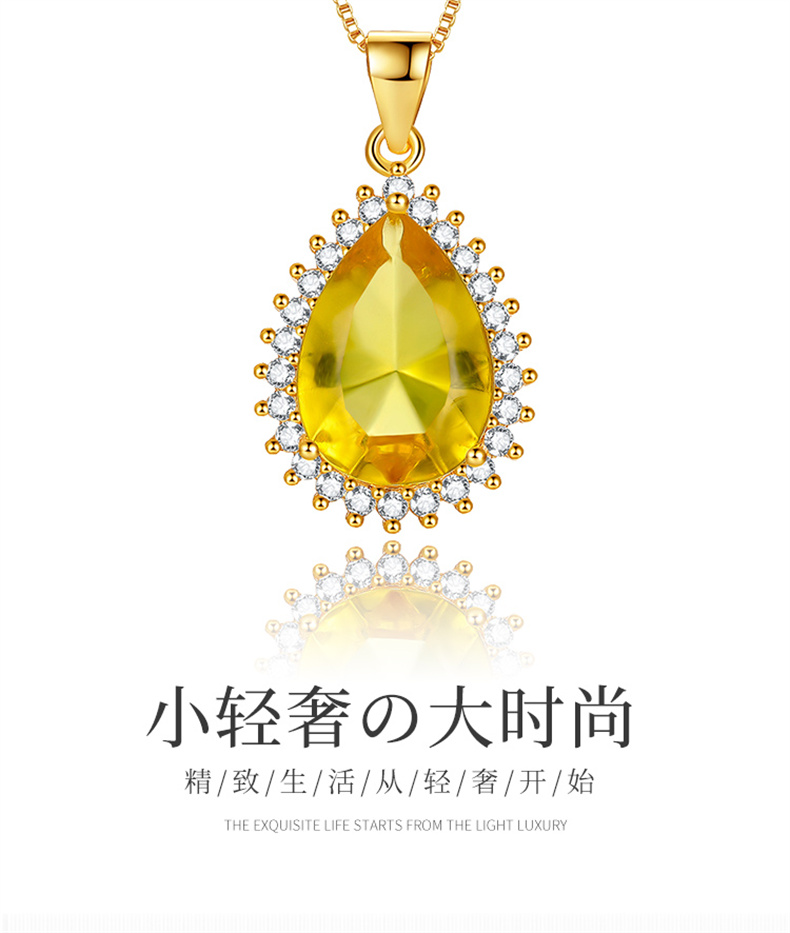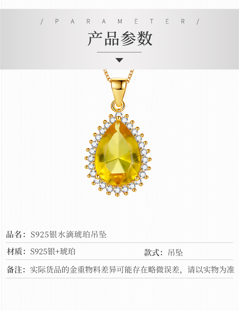 商品名称:行金银中 S925银水滴镶嵌豪华琥珀吊坠送女友赠合金链 (单位:件) 黄色