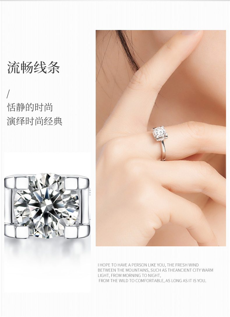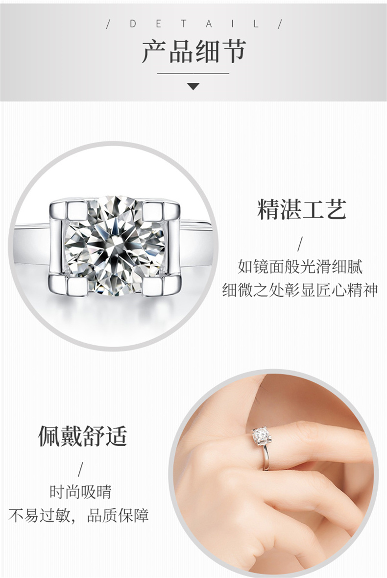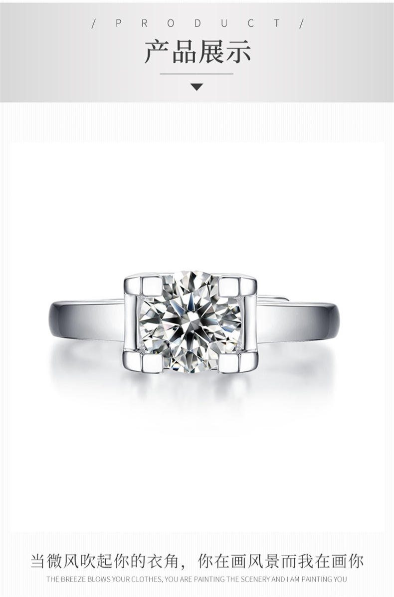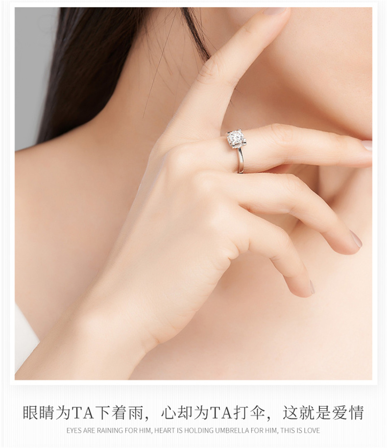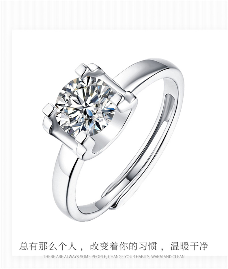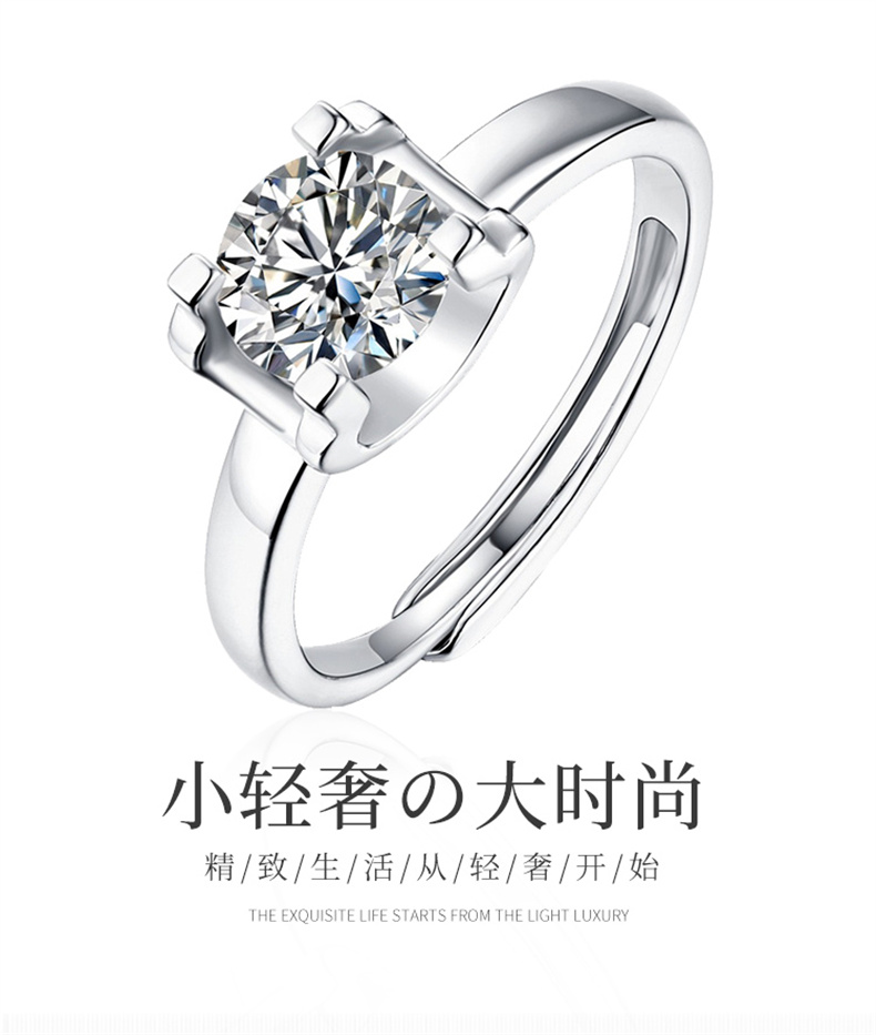 商品名称:行金银中 1克拉莫桑石牛头经典款活口纯银戒指女送女友礼物(单位:件) 白色