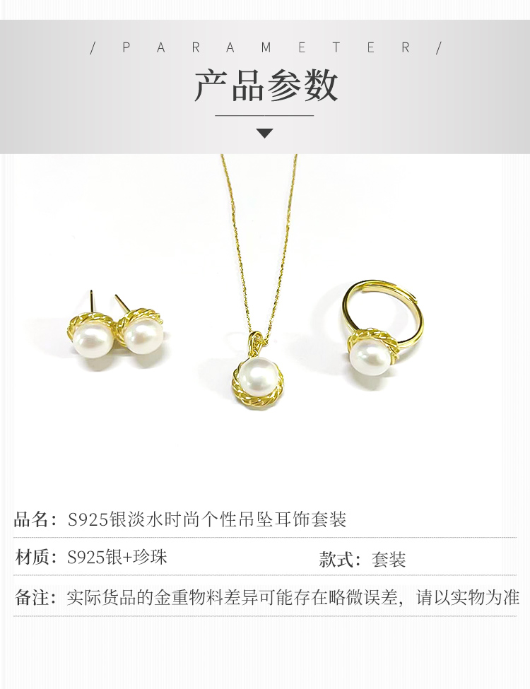 商品名称:行金银中 S925银淡水时尚个性吊坠耳饰套装(单位:套) 黄色