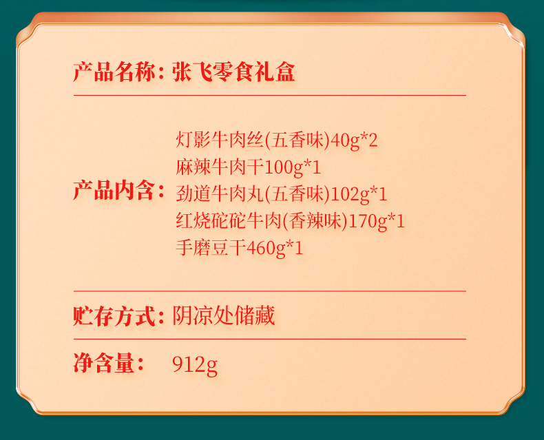 商品名称:张飞牛肉智勇双全912g(单位:盒) 红色 912g