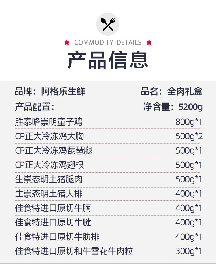 商品名称:阿格乐 生鲜套餐 5200g 珍珠灰