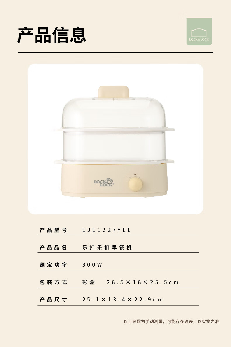商品名称:乐扣乐扣(LOCK&LOCK) EJE1227YEL 一键快蒸 双层大容量 煮蛋器 黄色(单位:台)